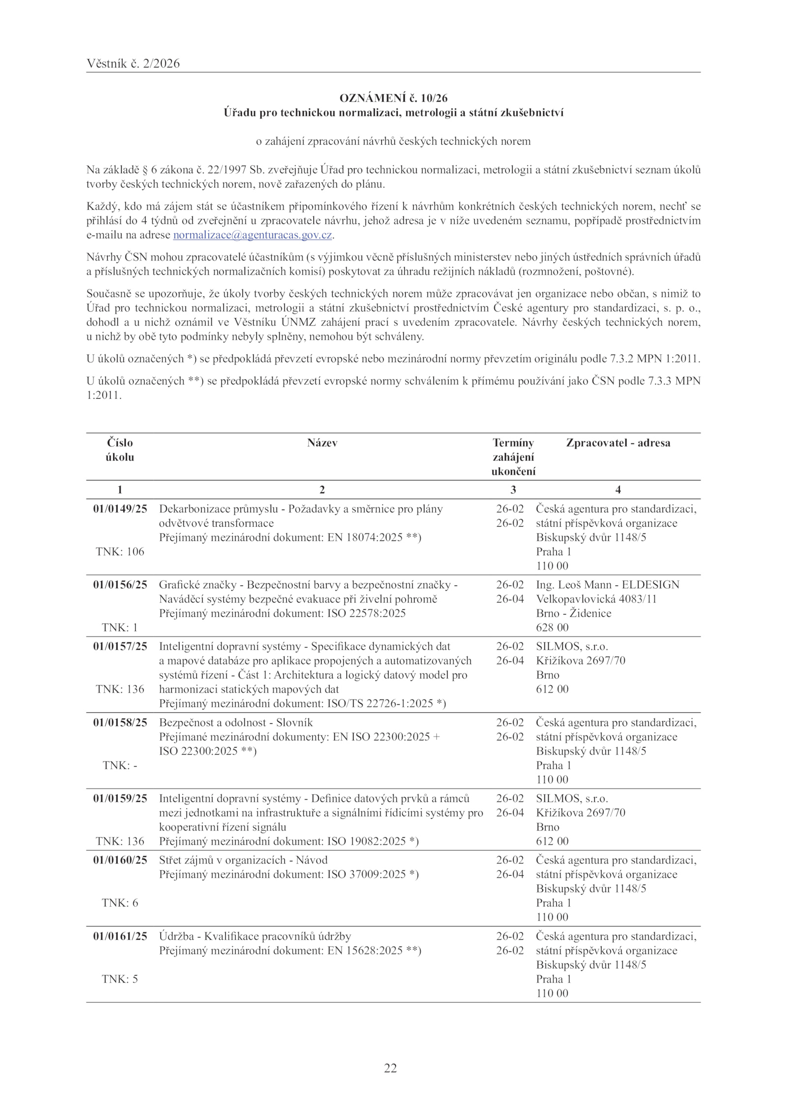 e-mailu adrese normalizace@agenturacas.o.Věstník 2/2026