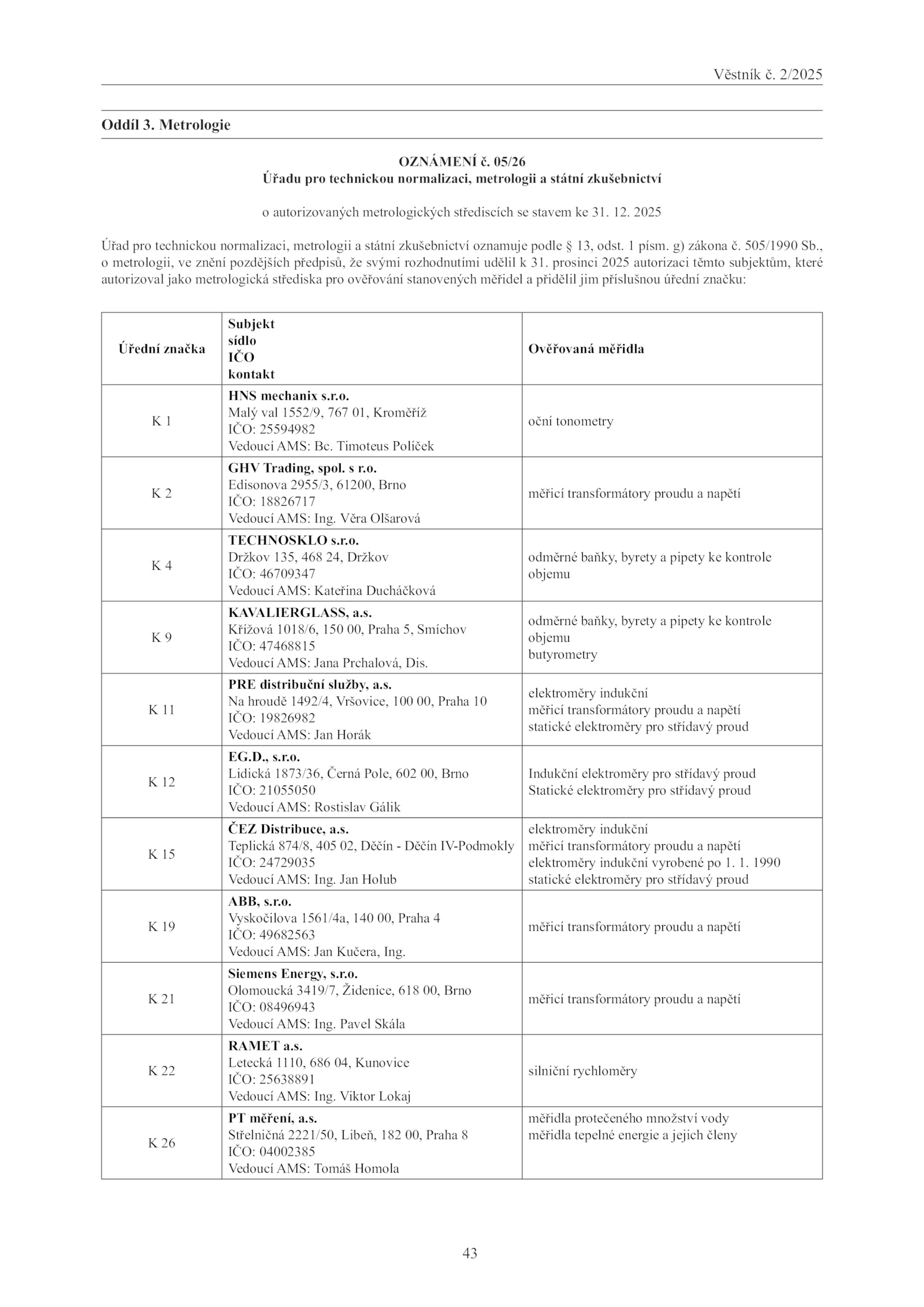 o metrologii, znění pozdějších předpisů, svými rozhodnutími udělil 31. Věra Olšarová