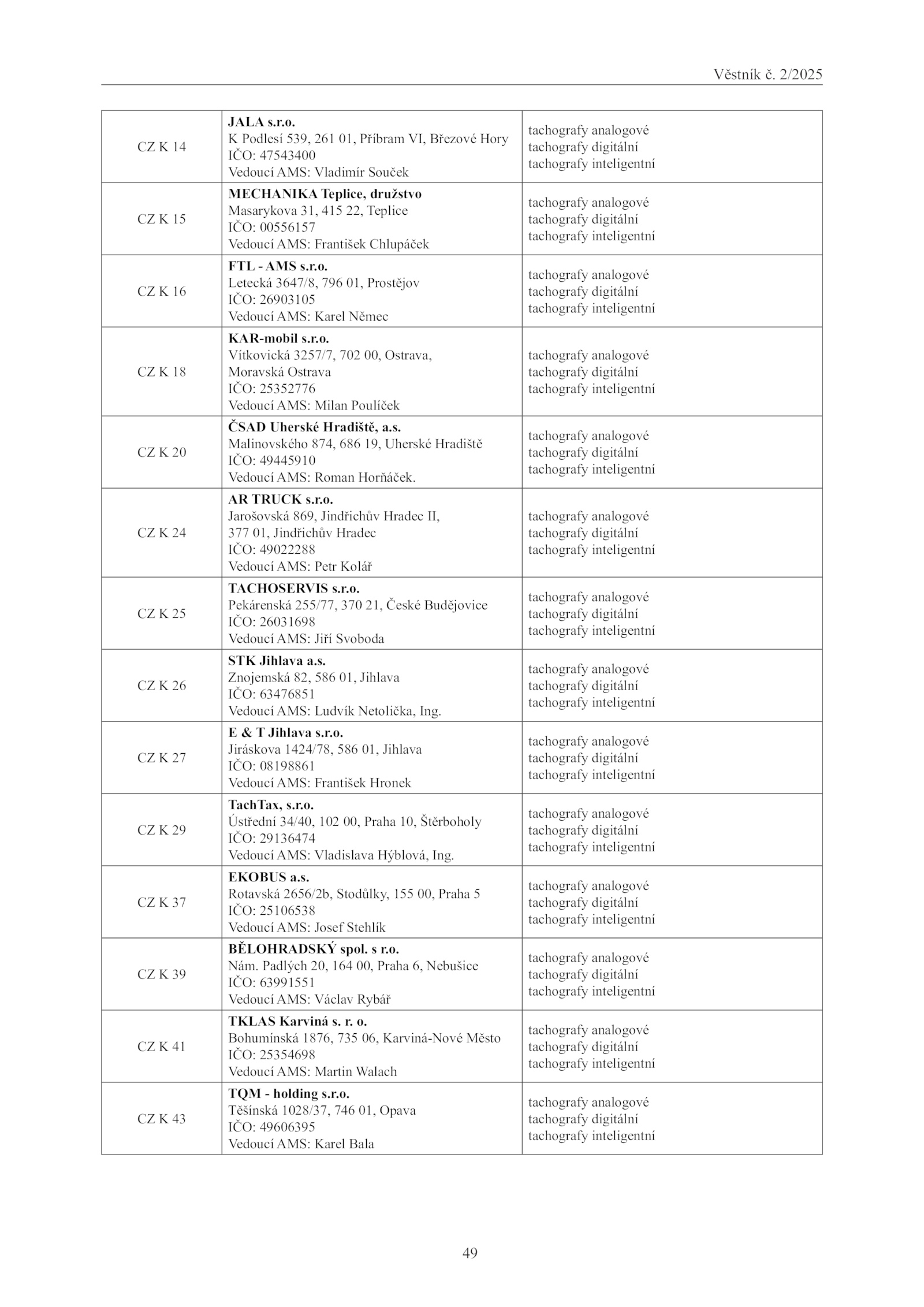 Vedoucí AMS: Vladislava Hýblová, Ing.Věstník 2/2025