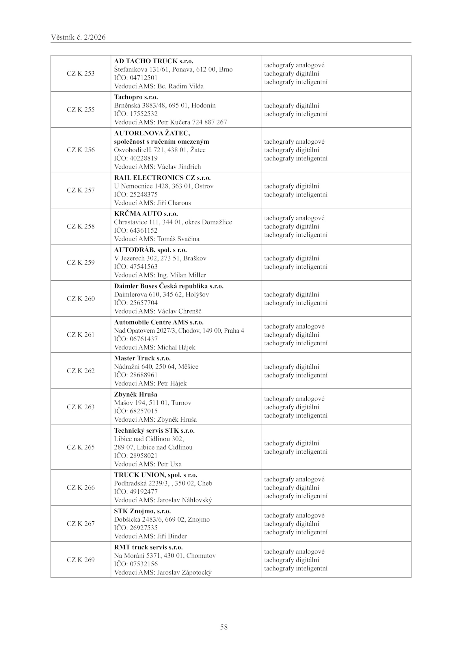 AUTODRÁB, spol.o.o.o.Věstník 2/2026