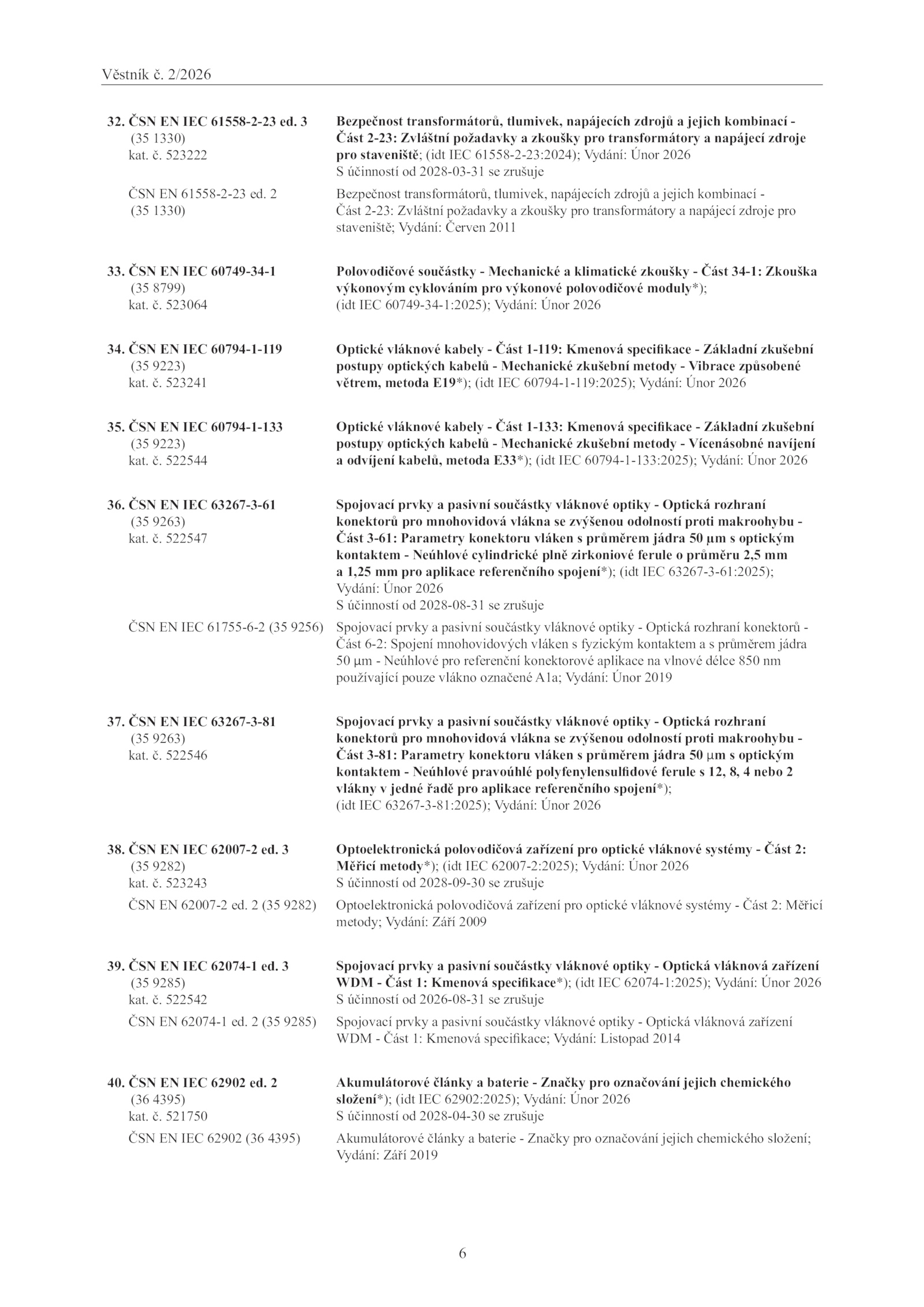 37. ČSN IEC 62007-2 ed. ČSN IEC 62902 ed. ČSN IEC 61558-2-23 ed. 2