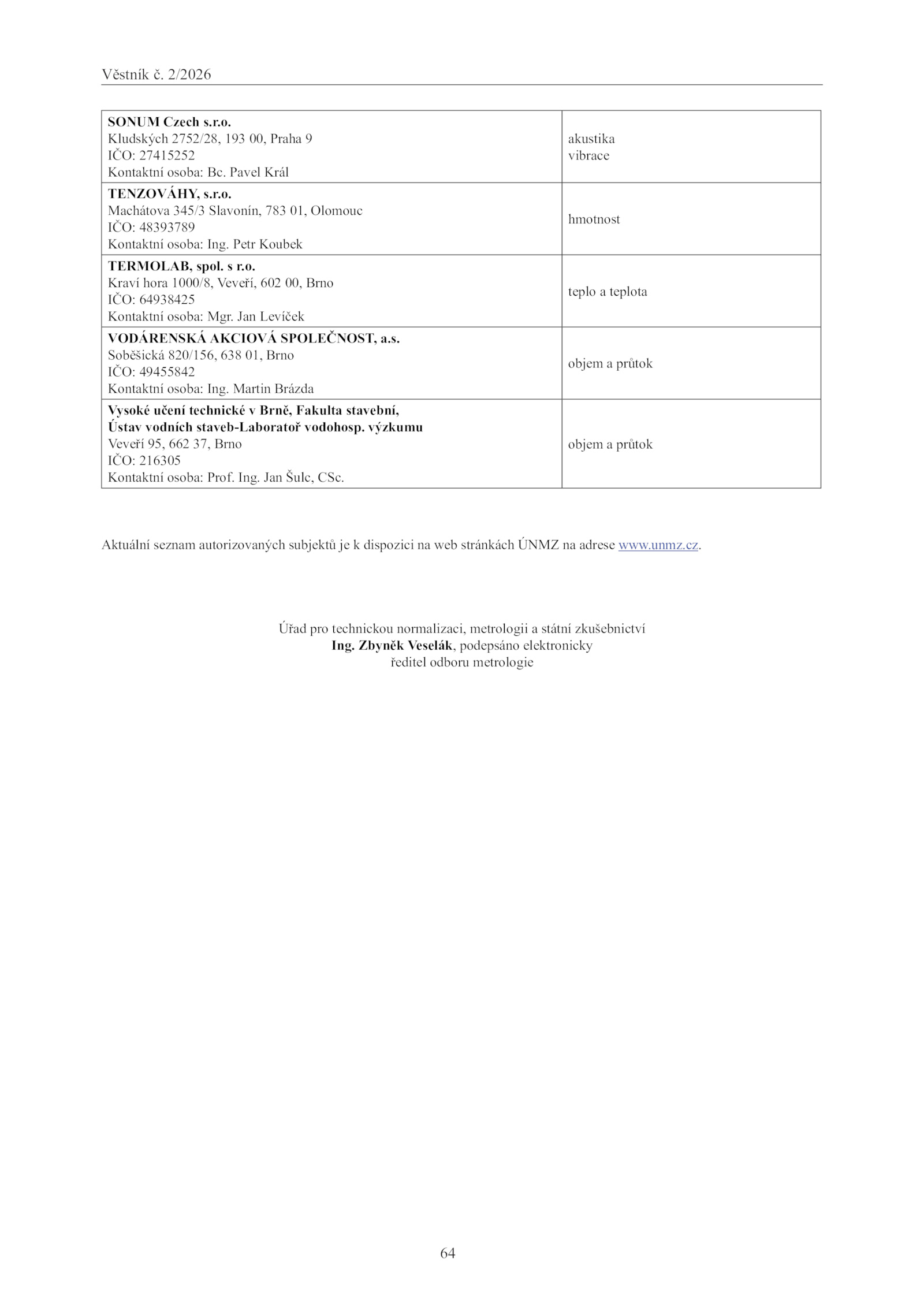 Aktuální seznam autorizovaných subjektů dispozici web stránkách ÚNMZ adrese www.r.o. výzkumu