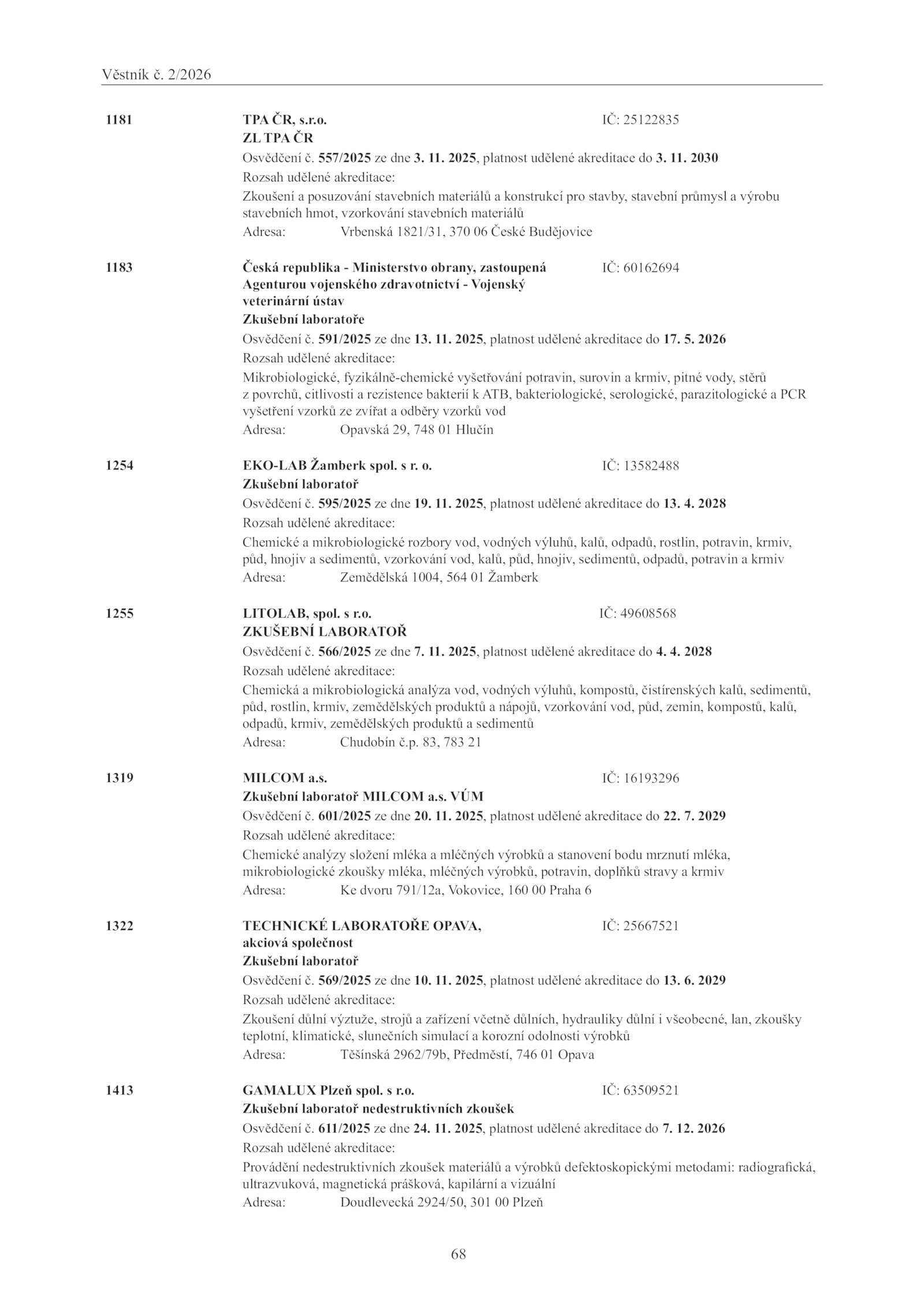 Osvědčení 569/2025 dne 10.Věstník 2/2026