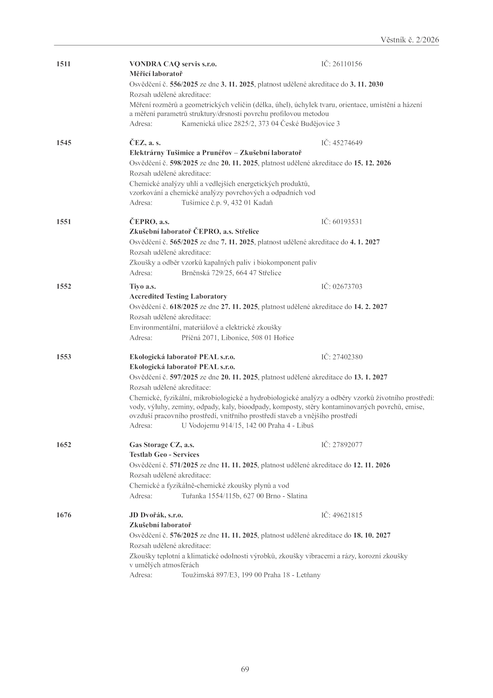 Zkušební laboratoř ČEPRO, a.Věstník 2/2026