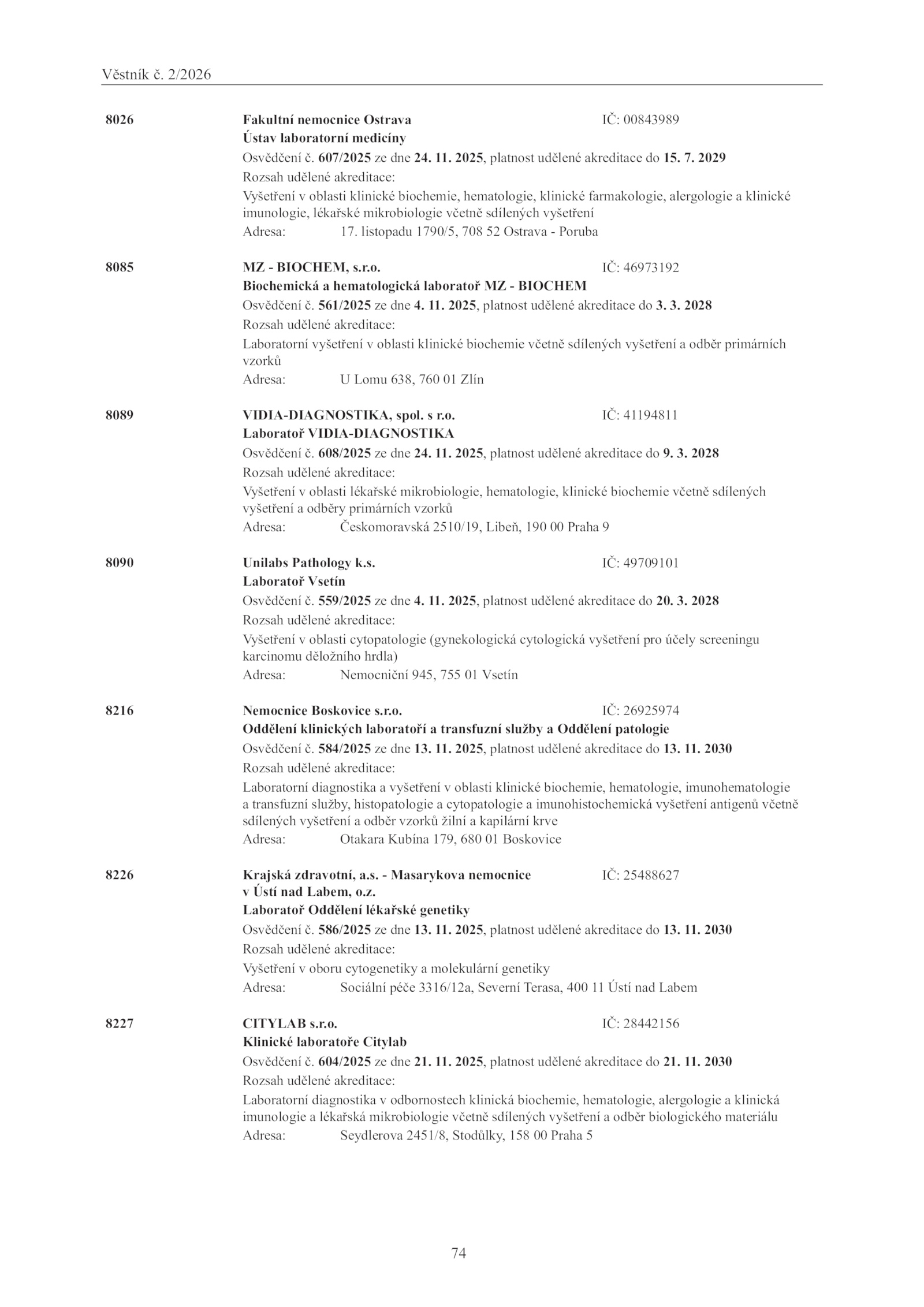 Osvědčení 584/2025 dne 13.r. 2025, platnost udělené akreditace 13.o.o.r. 2025, platnost udělené akreditace 21.z. 2029