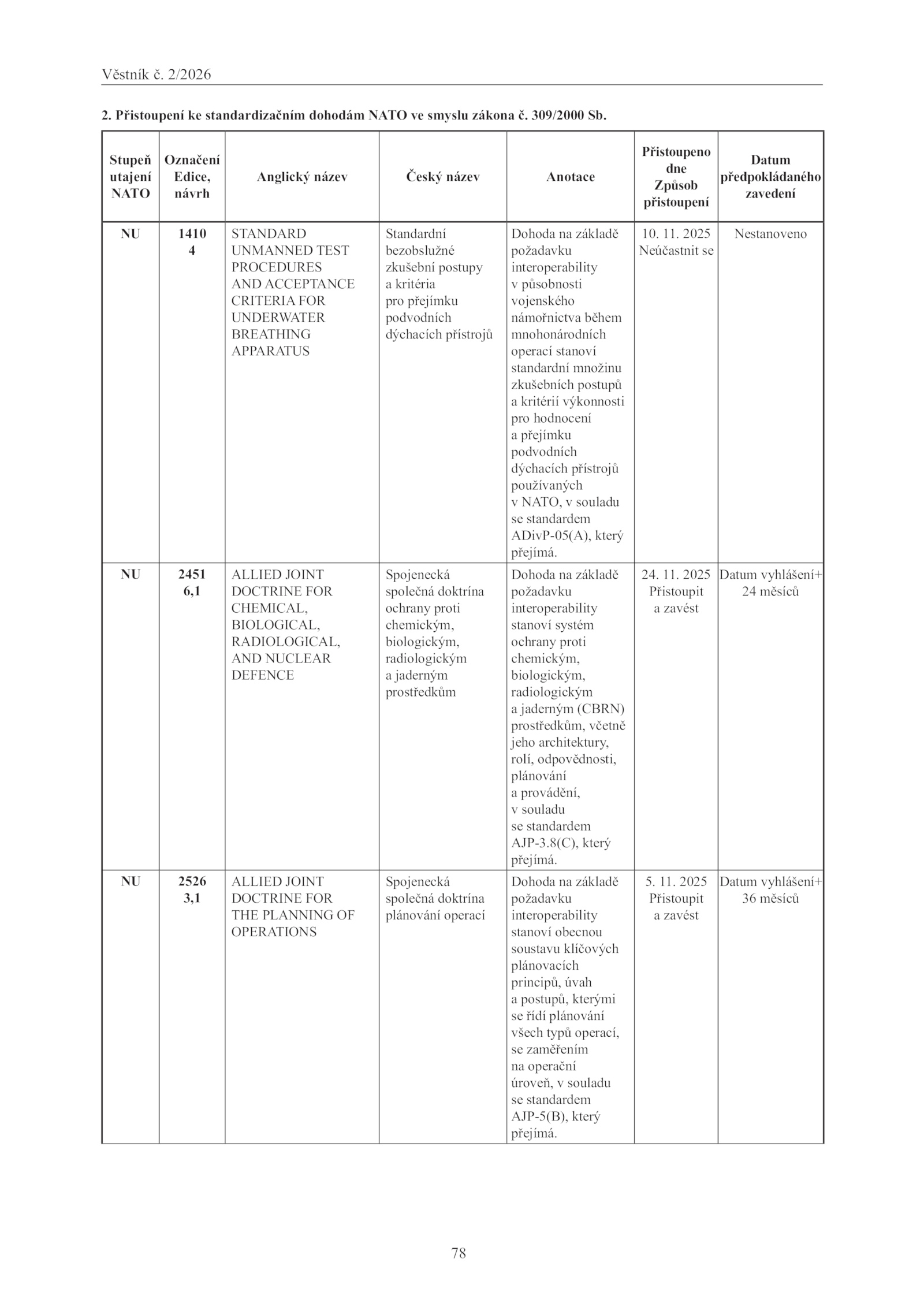 10. Přistoupení standardizačním dohodám NATO smyslu zákona 309/2000 Sb. 2025