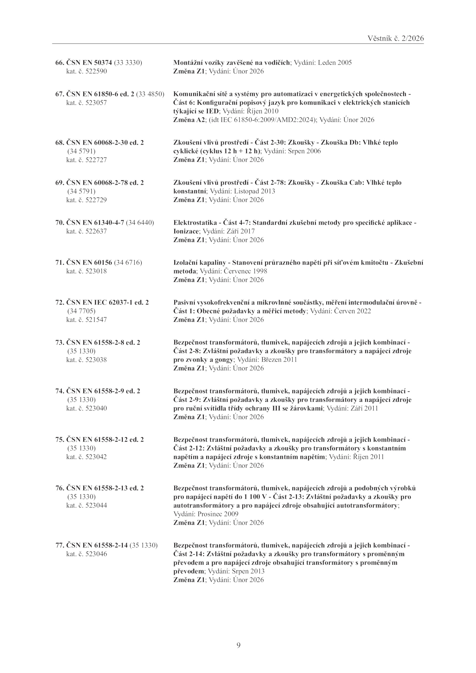 Změna A2; (idt IEC 61850-6:2009/AMD2:2024); Vydání: Únor 2026