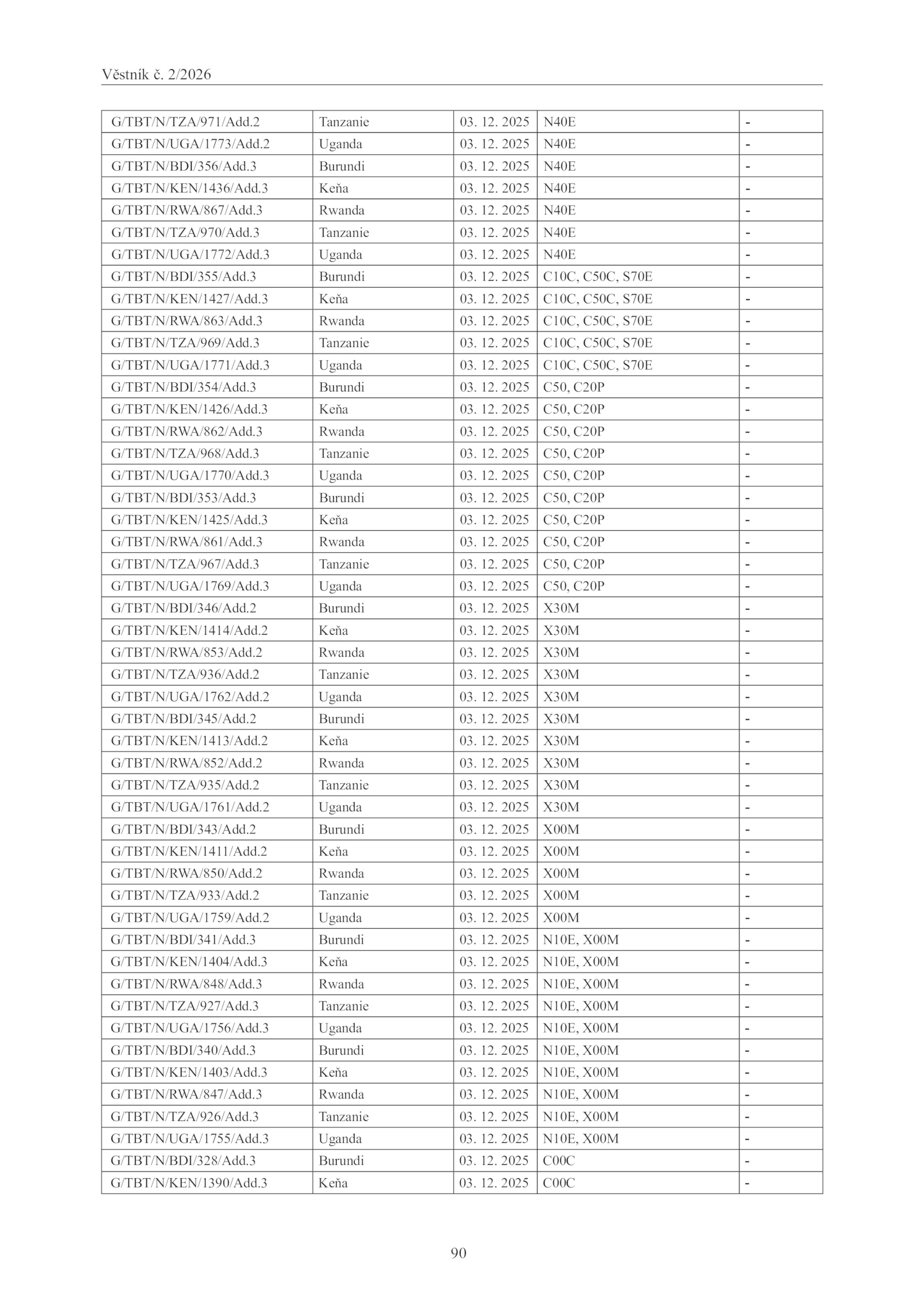 G/TBT/N/BDI/345/Add.Věstník 2/2026