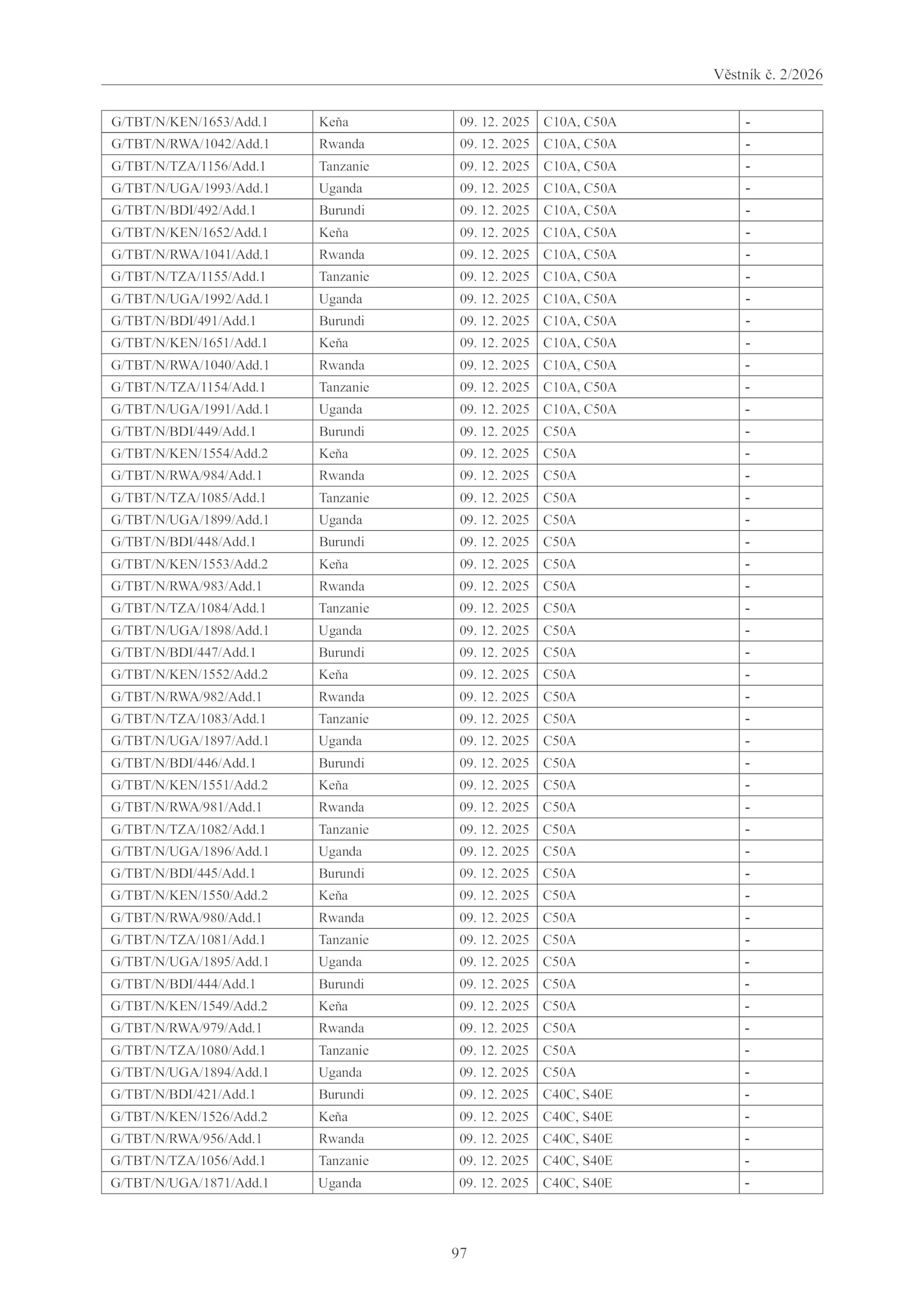 G/TBT/N/RWA/979/Add. 12.Věstník 2/2026