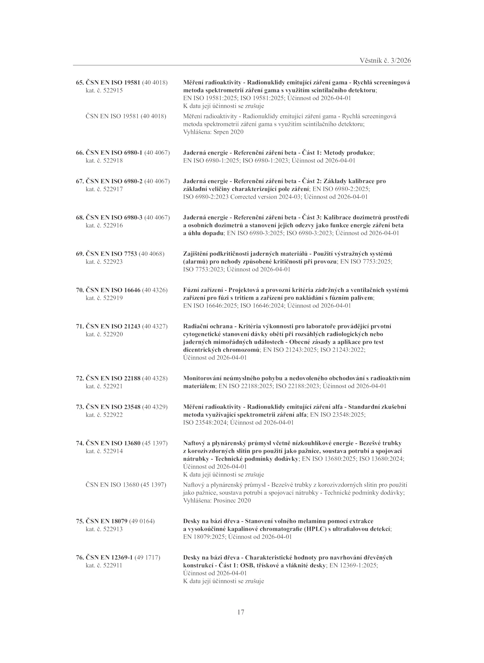 Věstník 3-26. ČSN ISO 13680 (45 1397)