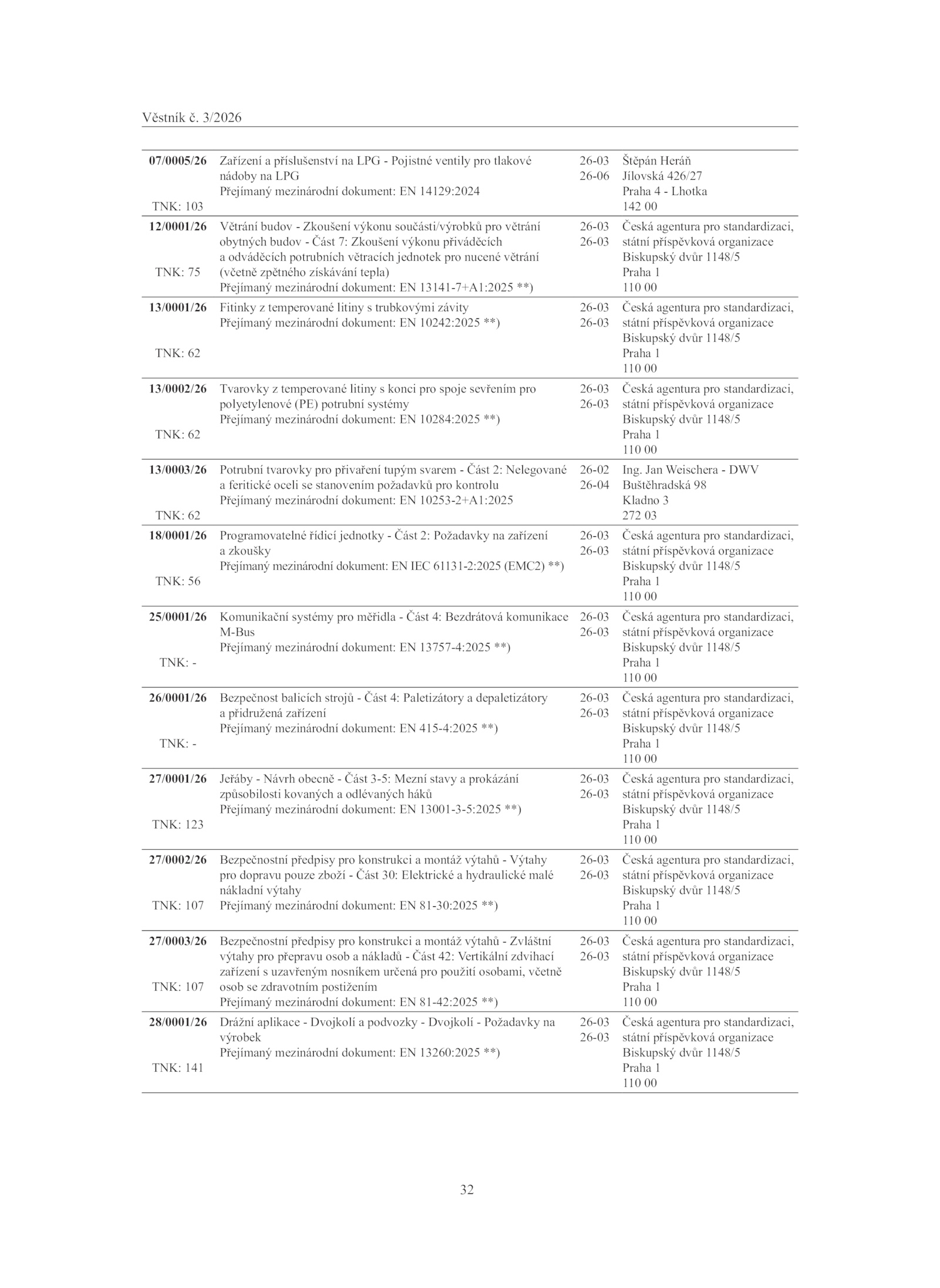 Přejímaný mezinárodní dokument: 13260:2025 **)