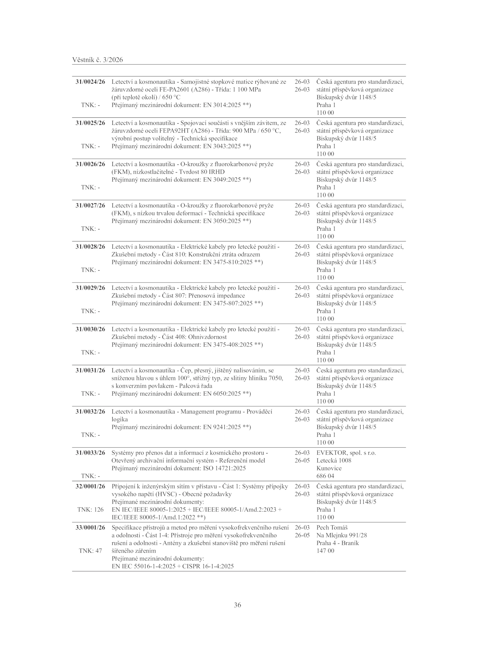 Přejímaný mezinárodní dokument: 3050:2025 **)