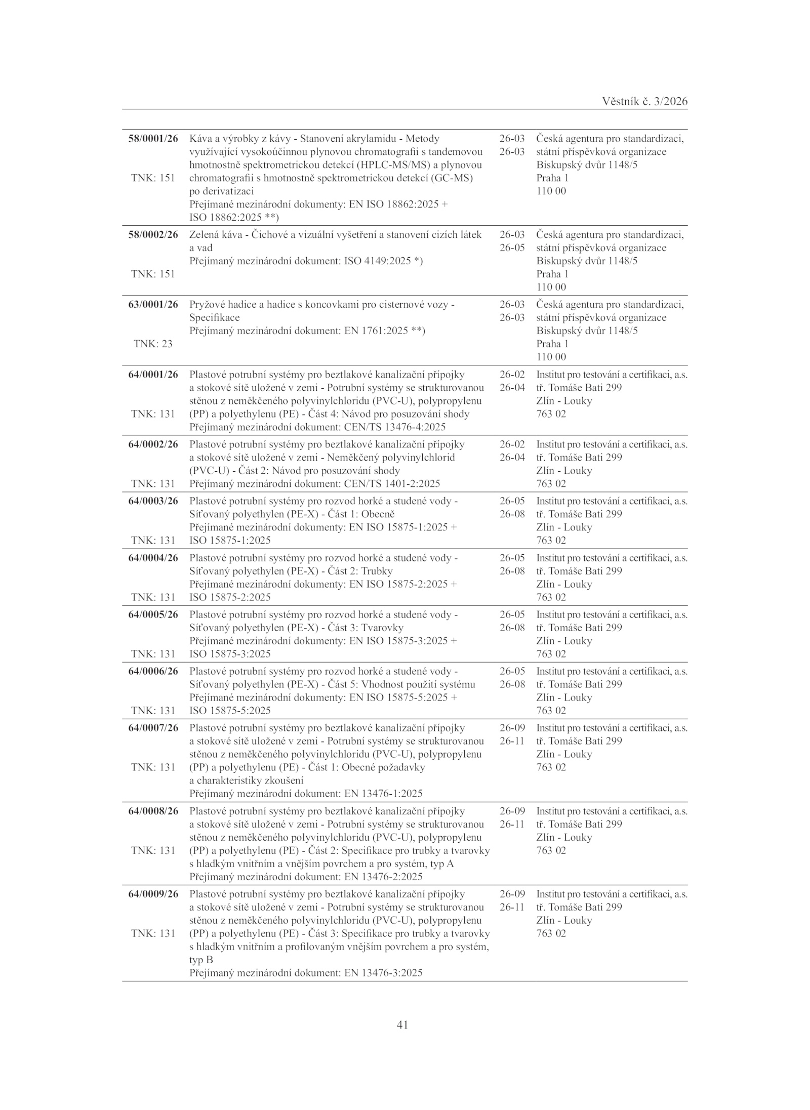 Přejímaný mezinárodní dokument: 1761:2025 **)