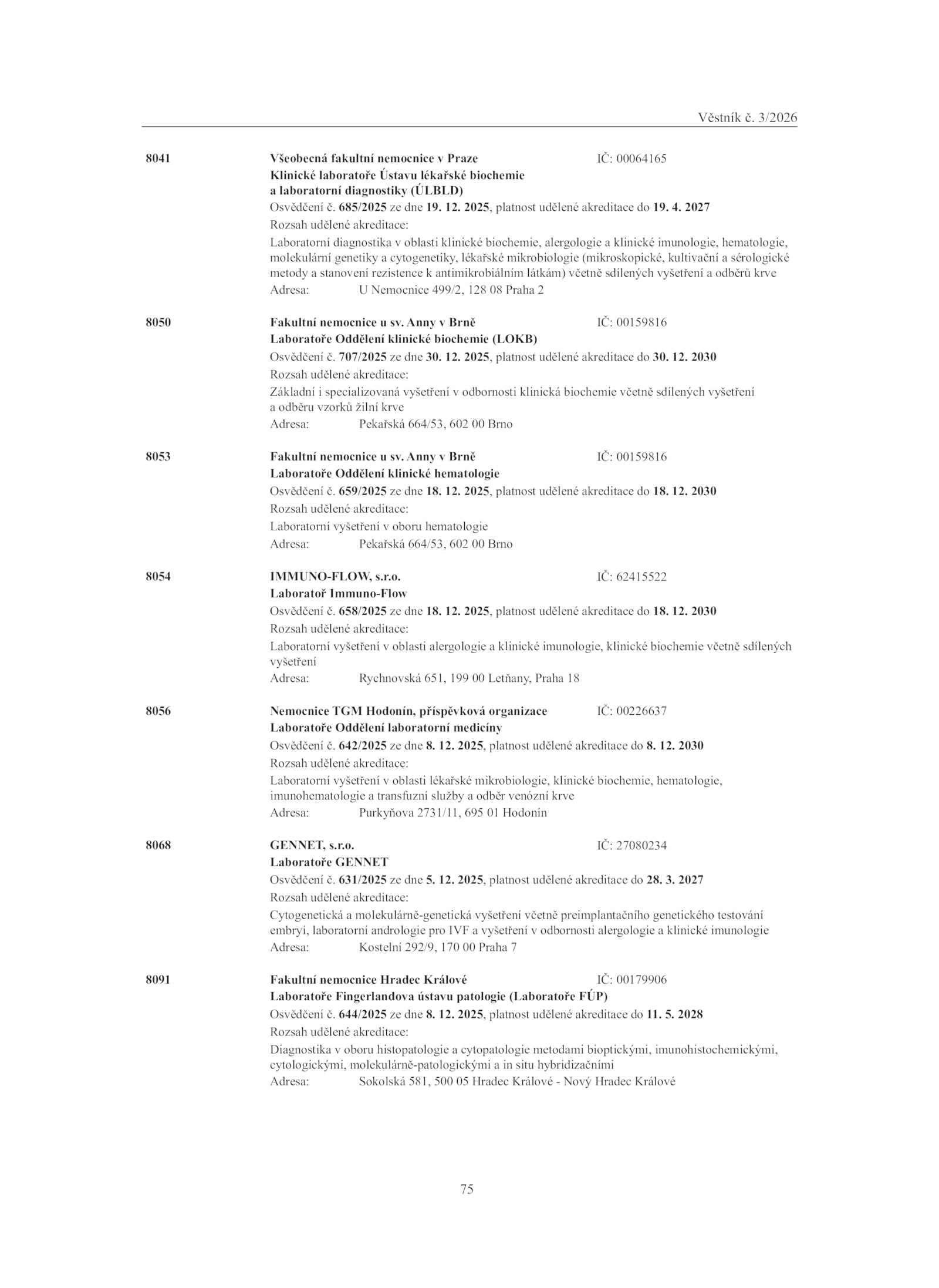8054 IMMUNO-FLOW, s. 2025, platnost udělené akreditace 12. 2025, platnost udělené akreditace 19. 2025, platnost udělené akreditace 28. 2025, platnost udělené akreditace 30. 2027