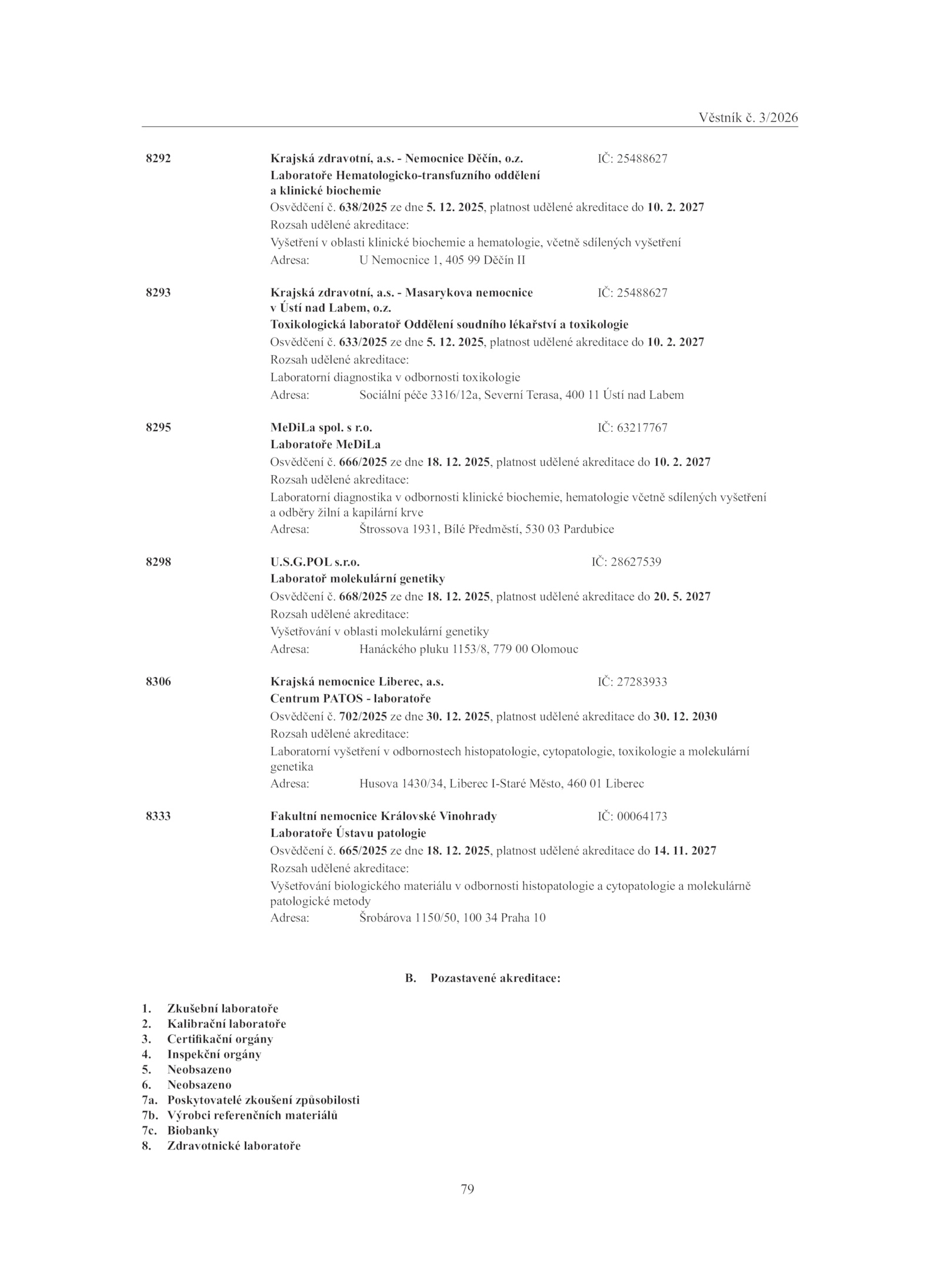 Osvědčení 702/2025 dne 30. Zdravotnické laboratoře