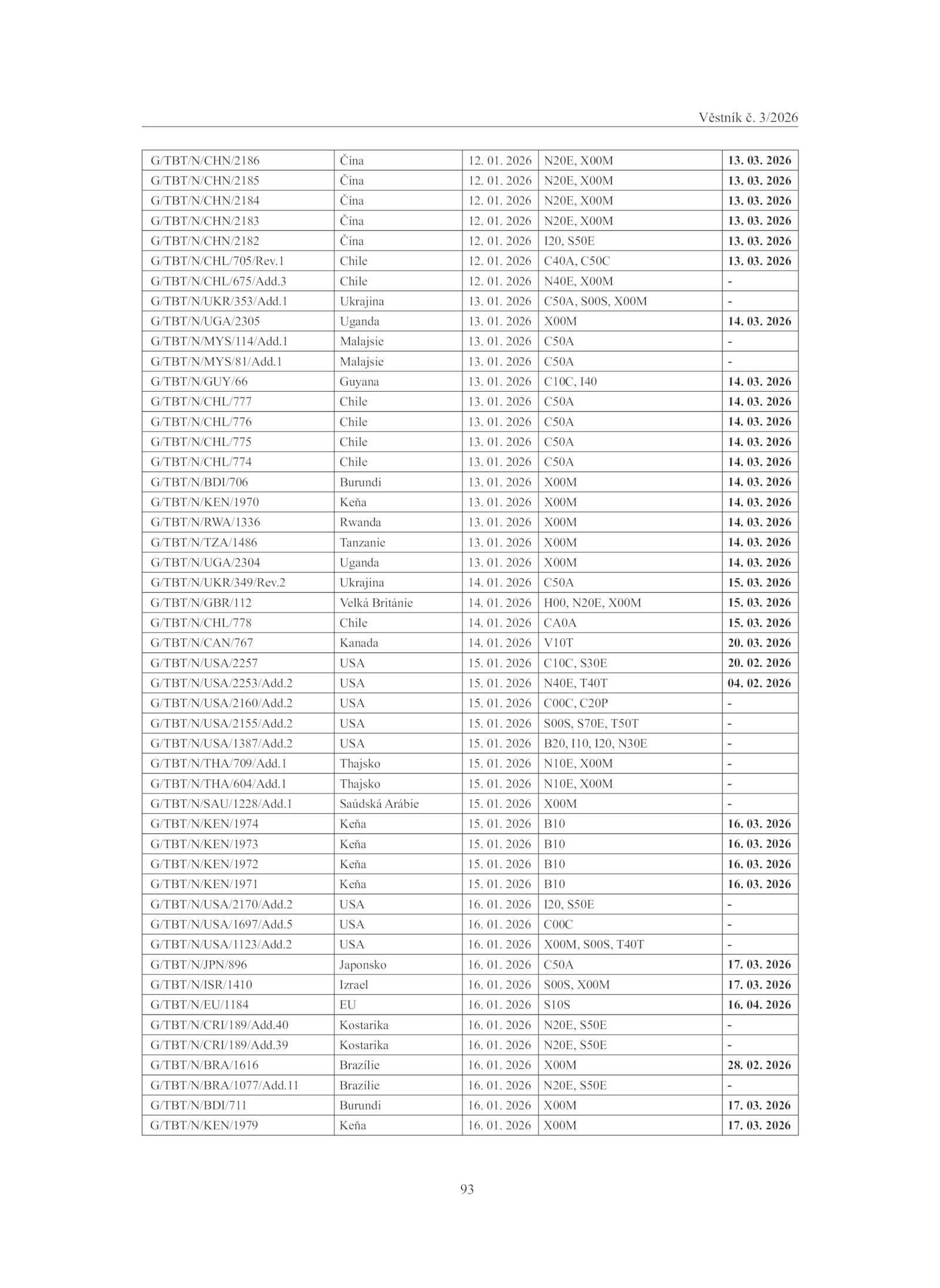 G/TBT/N/USA/1387/Add.1 Ukrajina 13. 03.2 USA 16. 03. 03.Věstník 3/2026