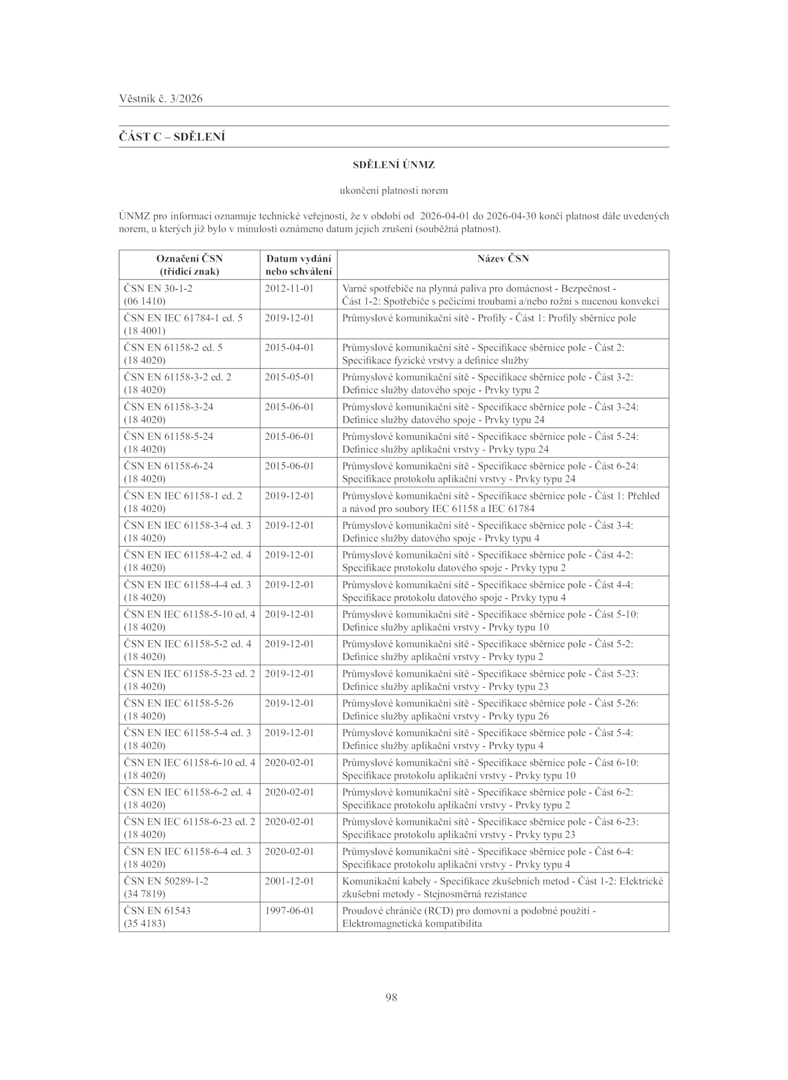 ČSN 61158-2 ed.02.Věstník 3/2026