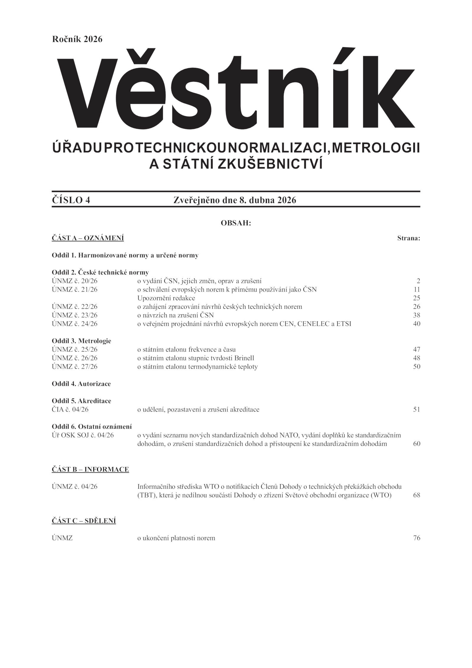 ÚNMZ 22/26 zahájení zpracování návrhů českých technických norem 26