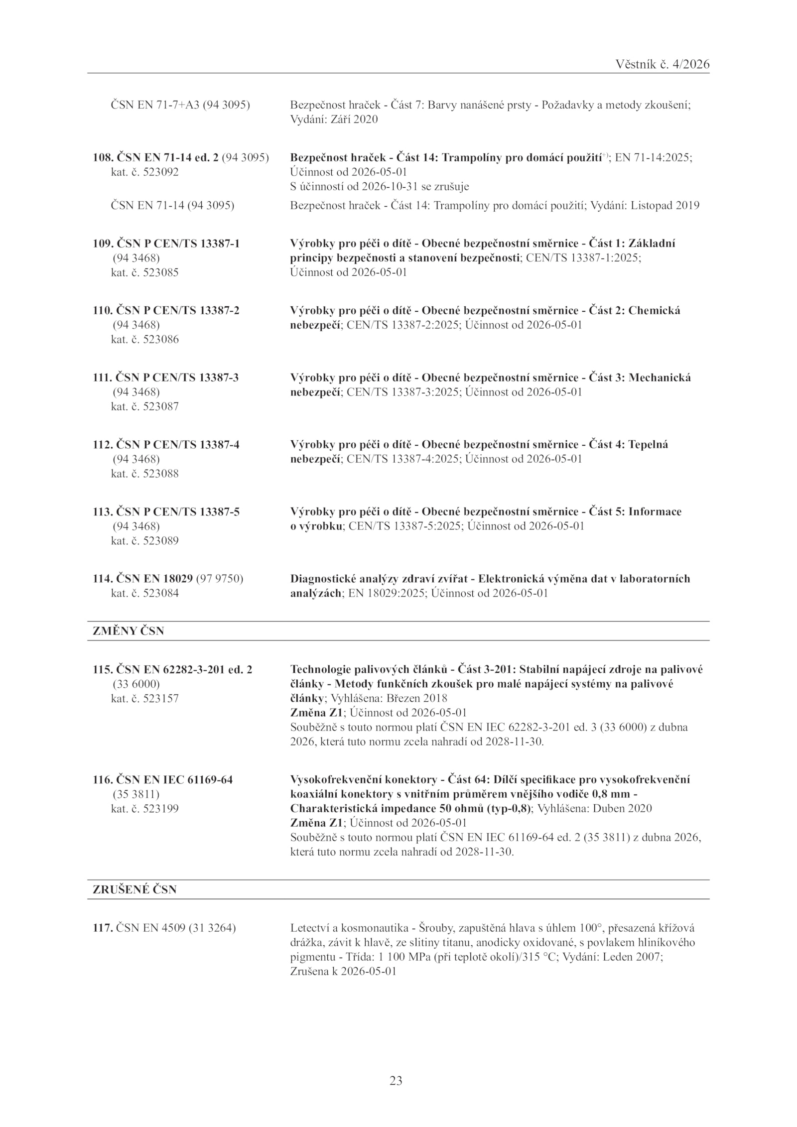 nebezpečí; CEN/TS 13387-4:2025; Účinnost 2026-05-01