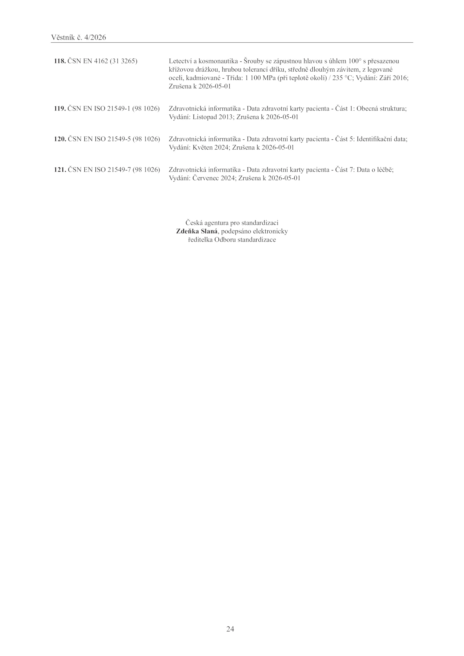 120. ČSN ISO 21549-7 (98 1026) Zdravotnická informatika Data zdravotní karty pacienta Část Data léčbě;