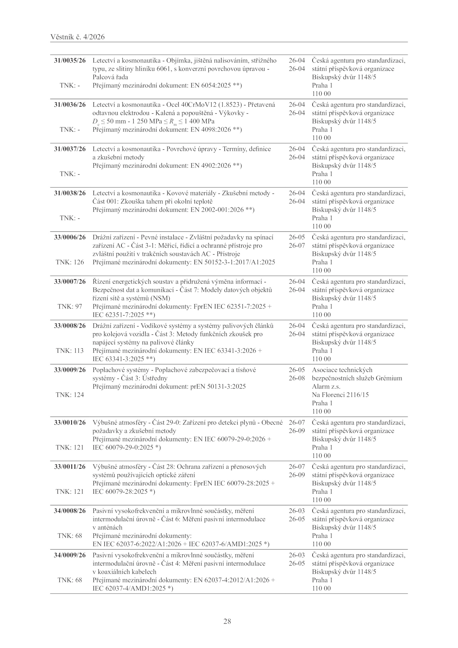 Přejímaný mezinárodní dokument: 4098:2026 **)