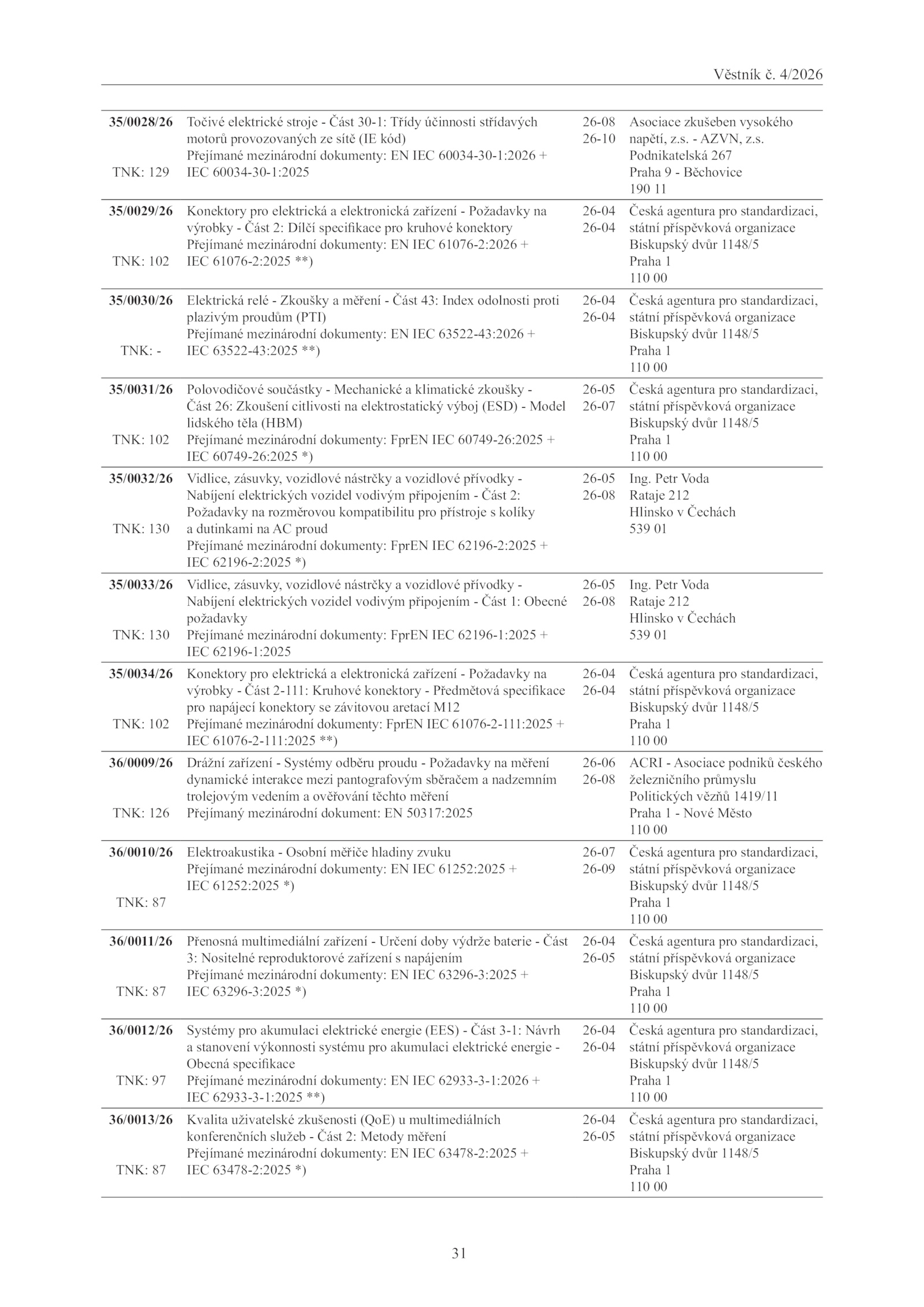 Přejímané mezinárodní dokumenty: IEC 63522-43:2026 +
