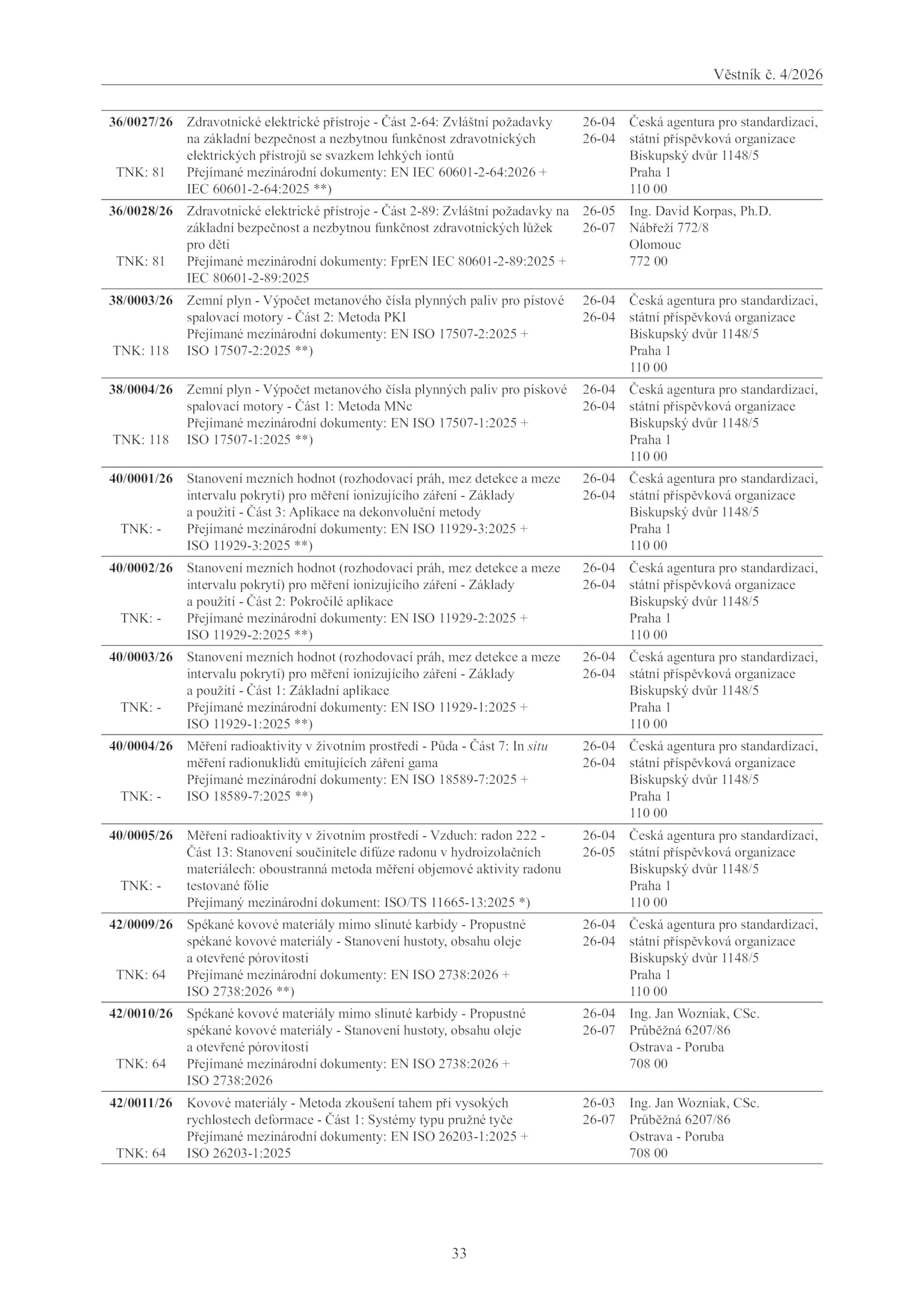 Přejímané mezinárodní dokumenty: ISO 2738:2026 +