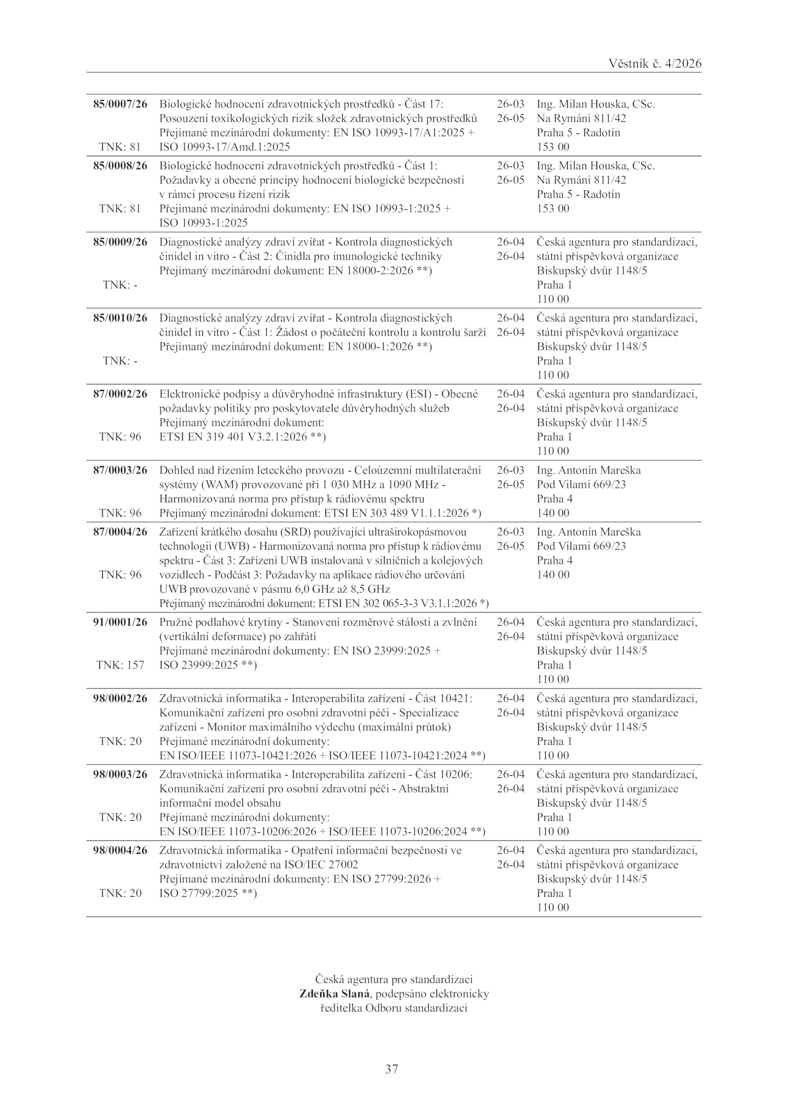 Přejímané mezinárodní dokumenty: ISO 27799:2026 +