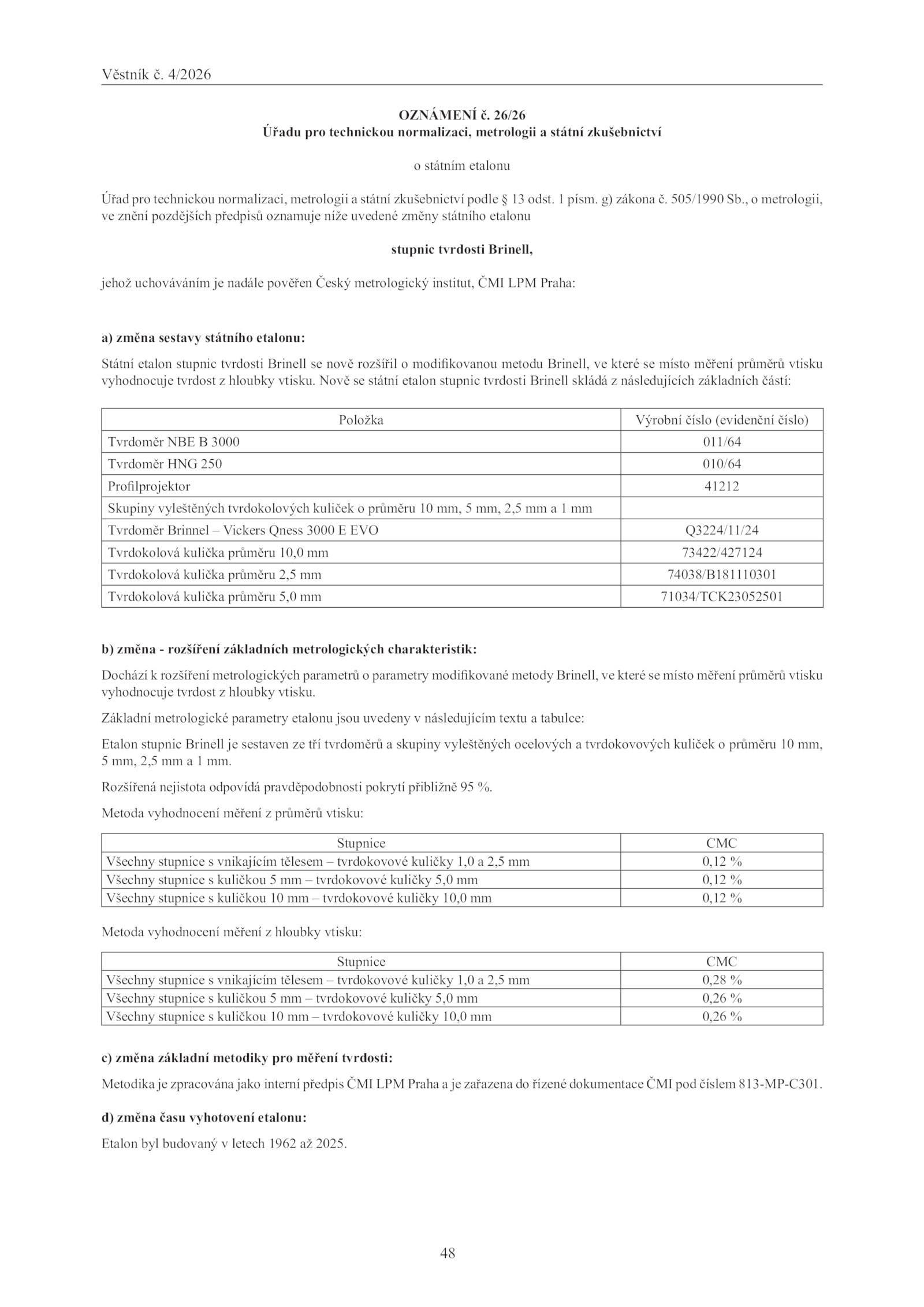 vyhodnocuje tvrdost hloubky vtisku.Věstník 4/2026