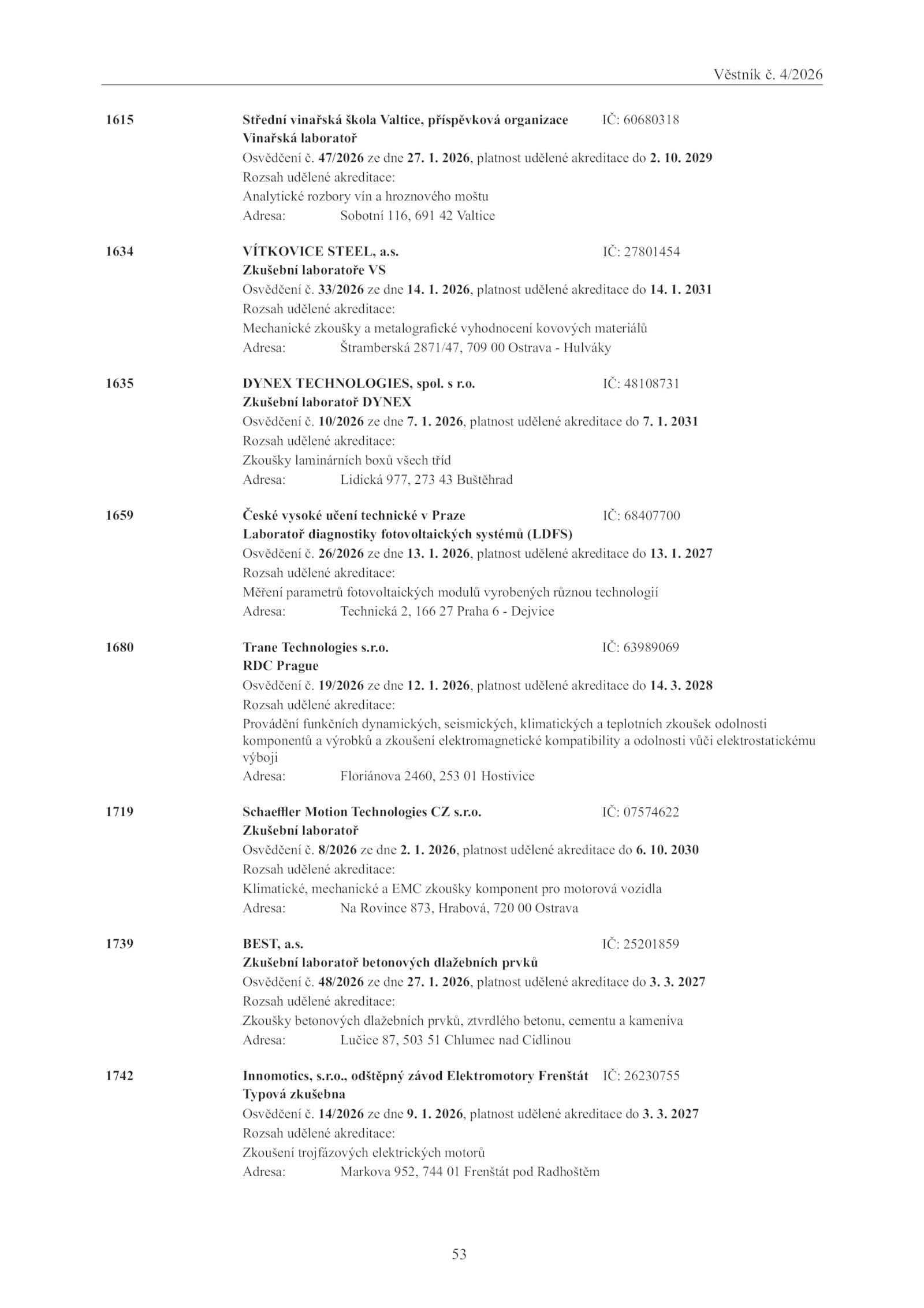 Osvědčení 26/2026 dne 13. IČ: 25201859