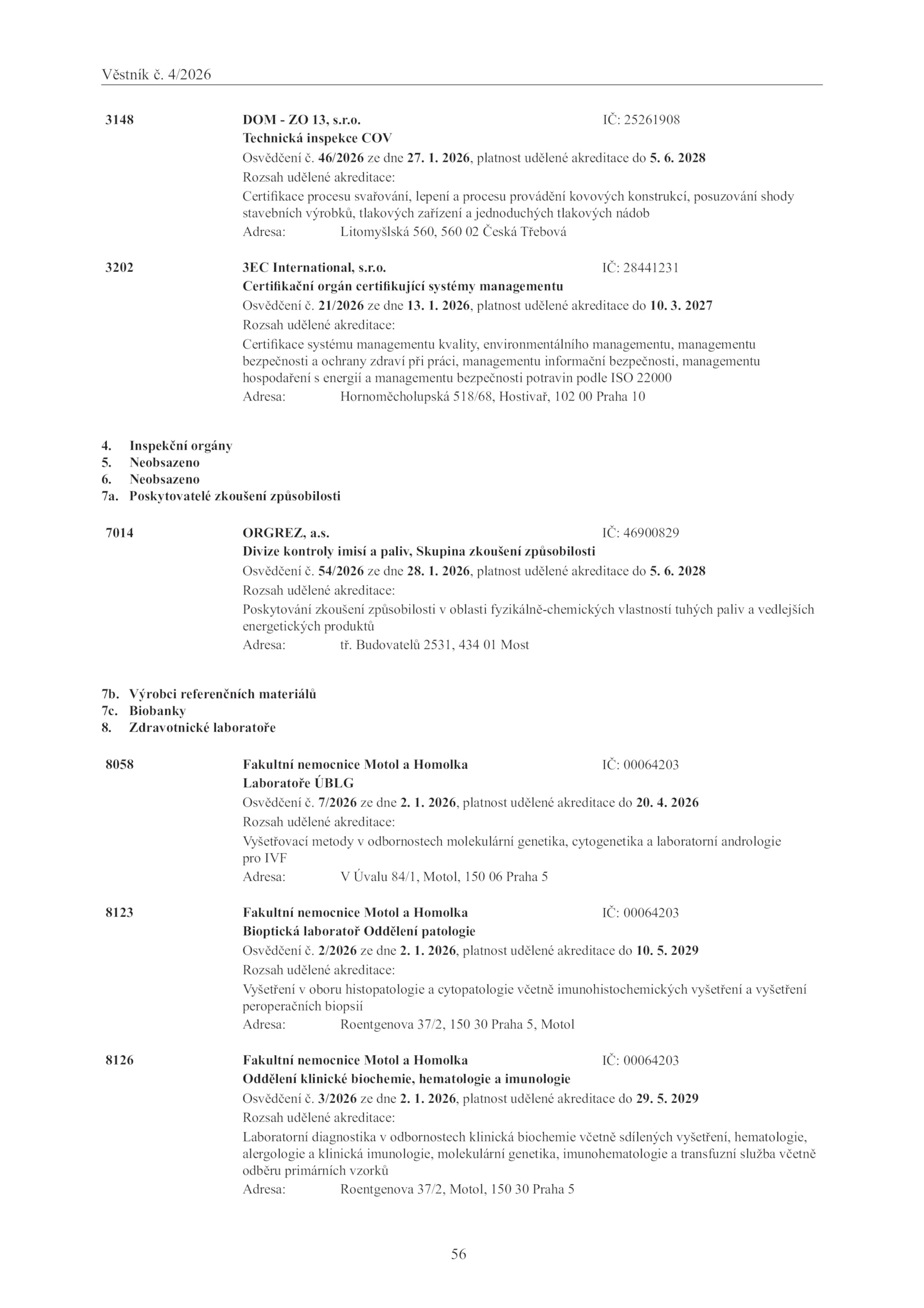 Osvědčení 21/2026 dne 13. Výrobci referenčních materiálů