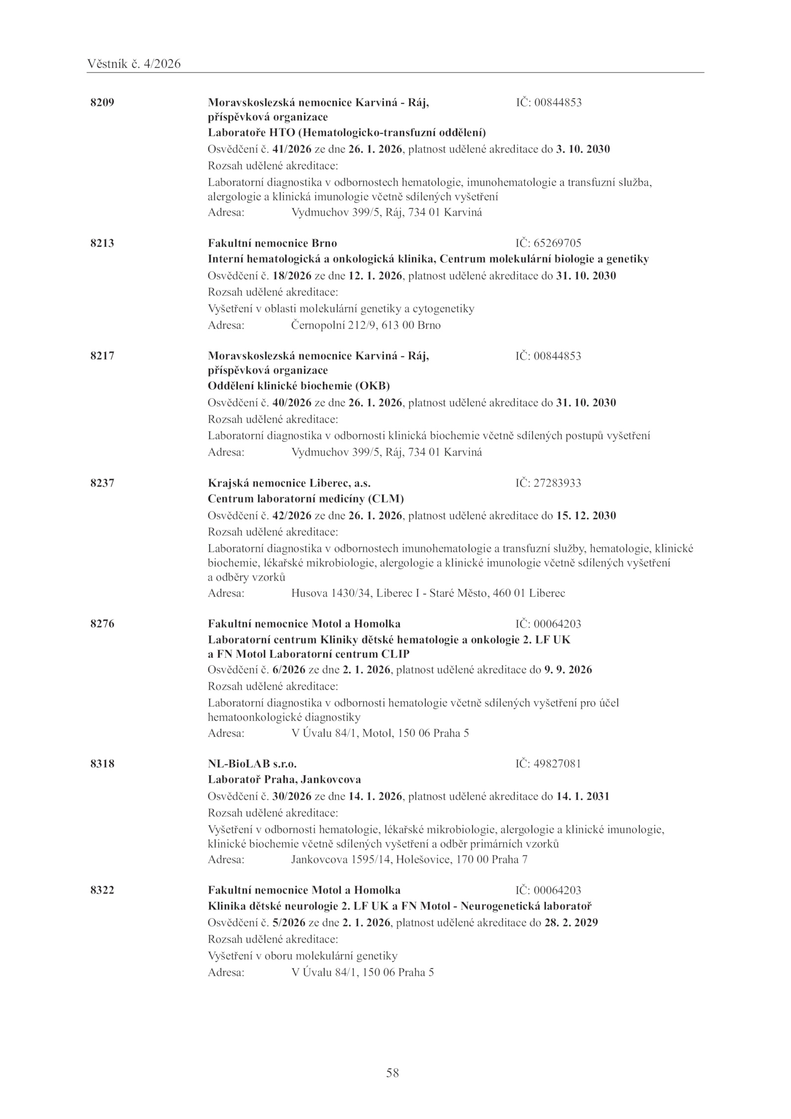 Osvědčení 42/2026 dne 26. 2026, platnost udělené akreditace 31. 2029