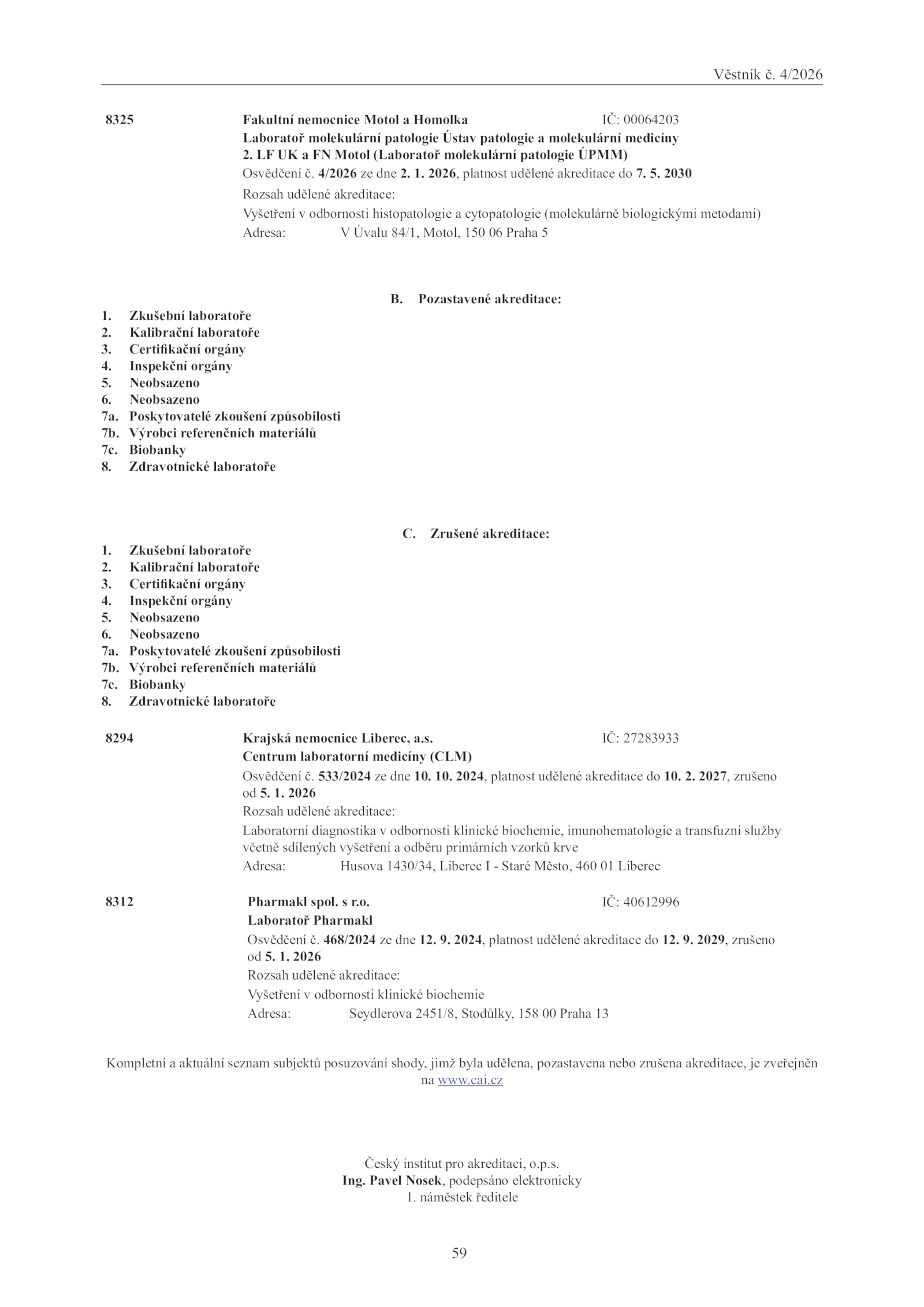 Osvědčení 4/2026 dne 2026, platnost udělené akreditace 2030