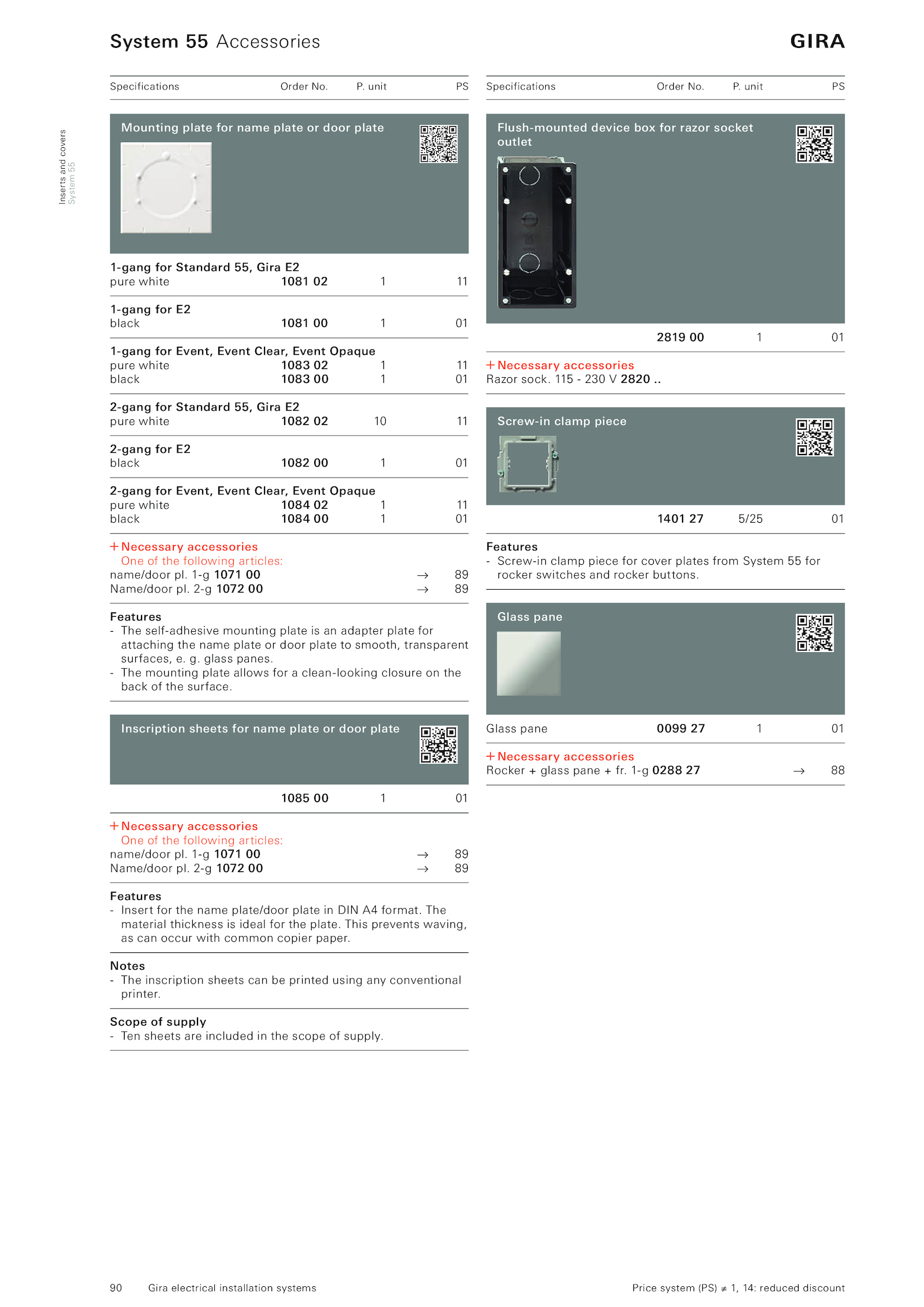 Gira electrical installation systems Price system (PS) 14: reduced discount