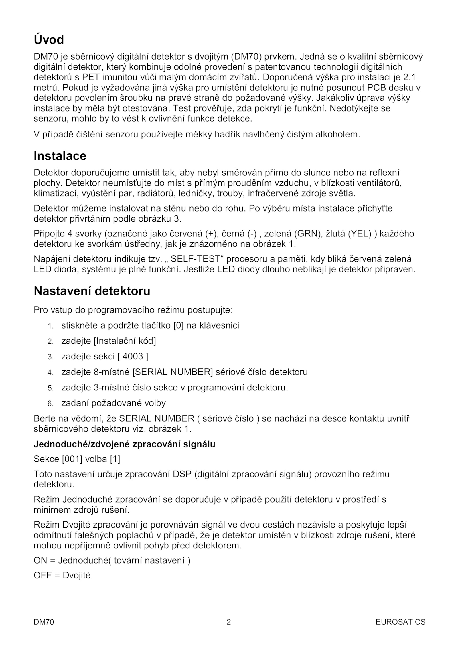 DM70 sběrnicový digitální detektor dvojitým (DM70) prvkem. stiskněte podržte tlačítko [0] klávesnici