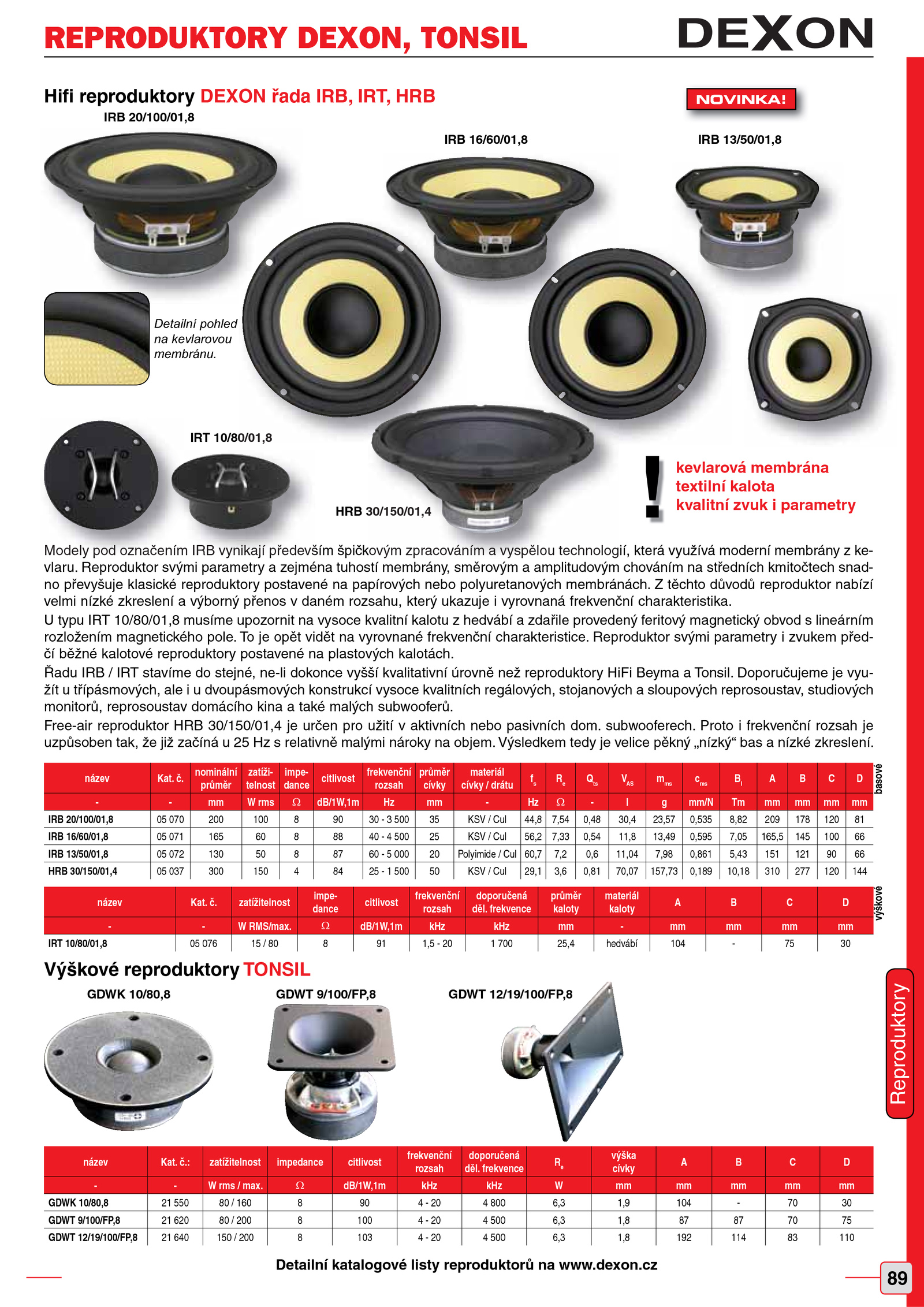 Hifi reproduktory DEXON řada IRB, IRT, HRB