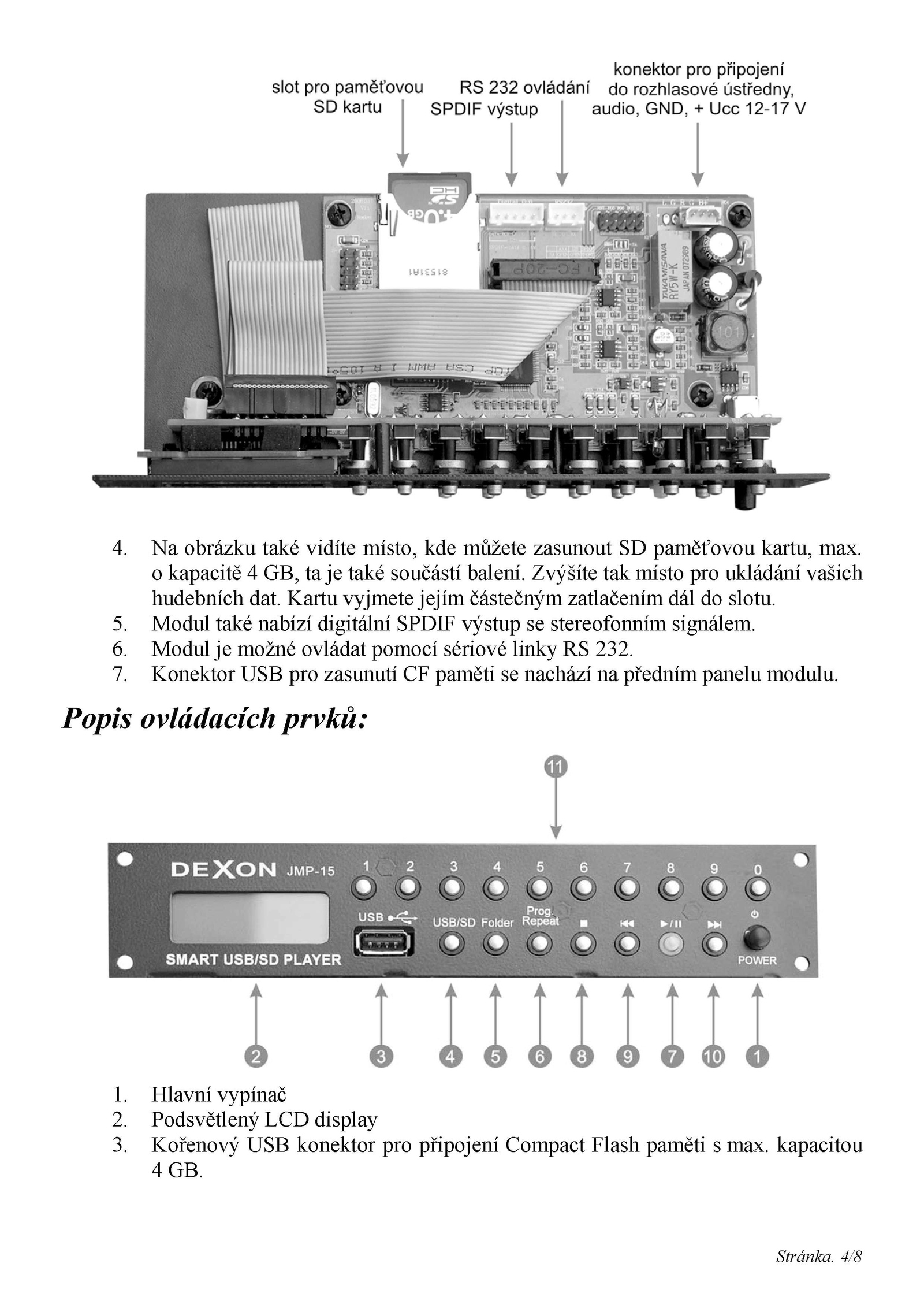 hudebních dat. Kartu vyjmete jejím částečným zatlačením dál slotu. Kořenový USB konektor pro připojení Compact Flash paměti max.