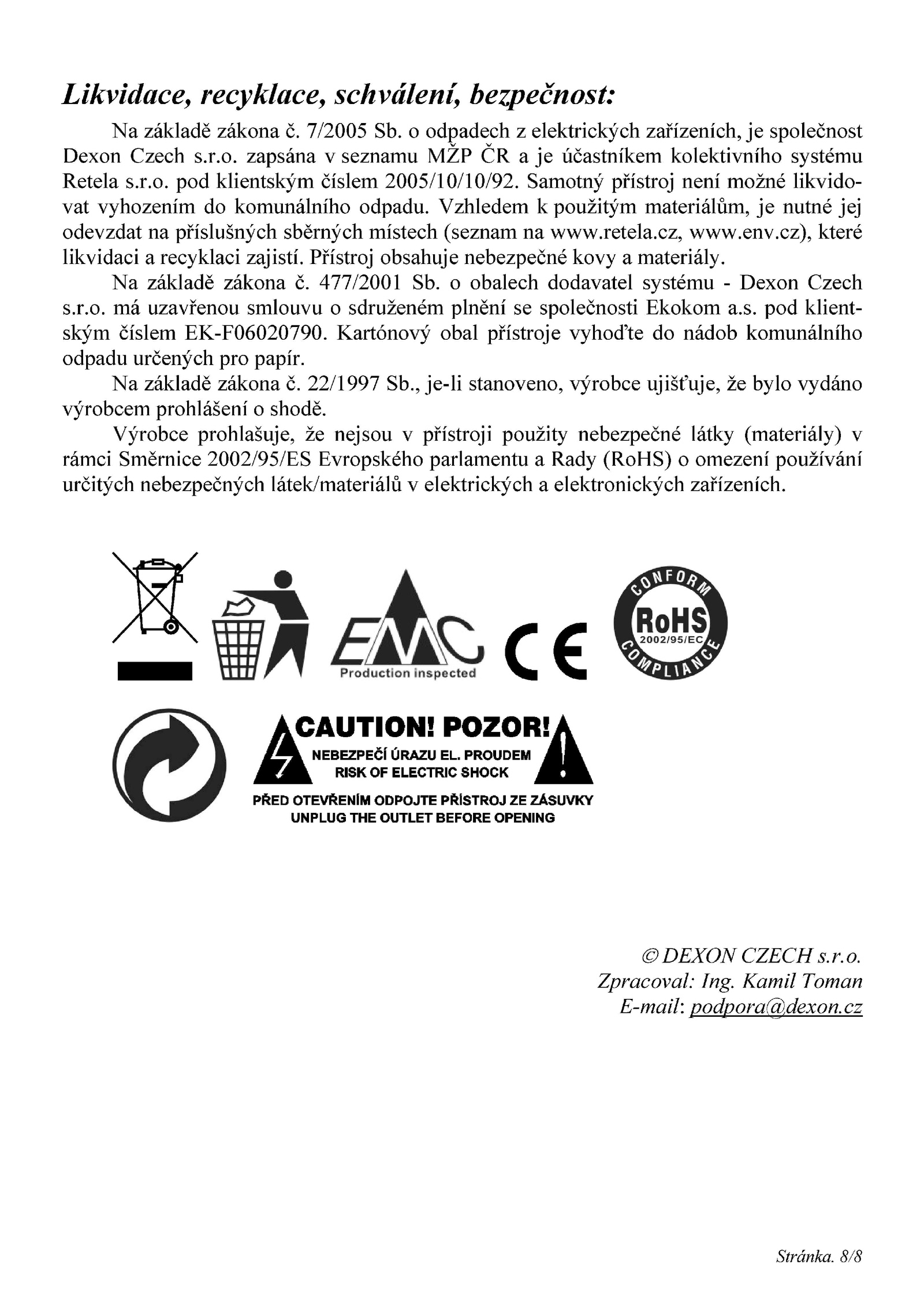 ©DEXON CZECH s. Samotný přístroj není možné likvido