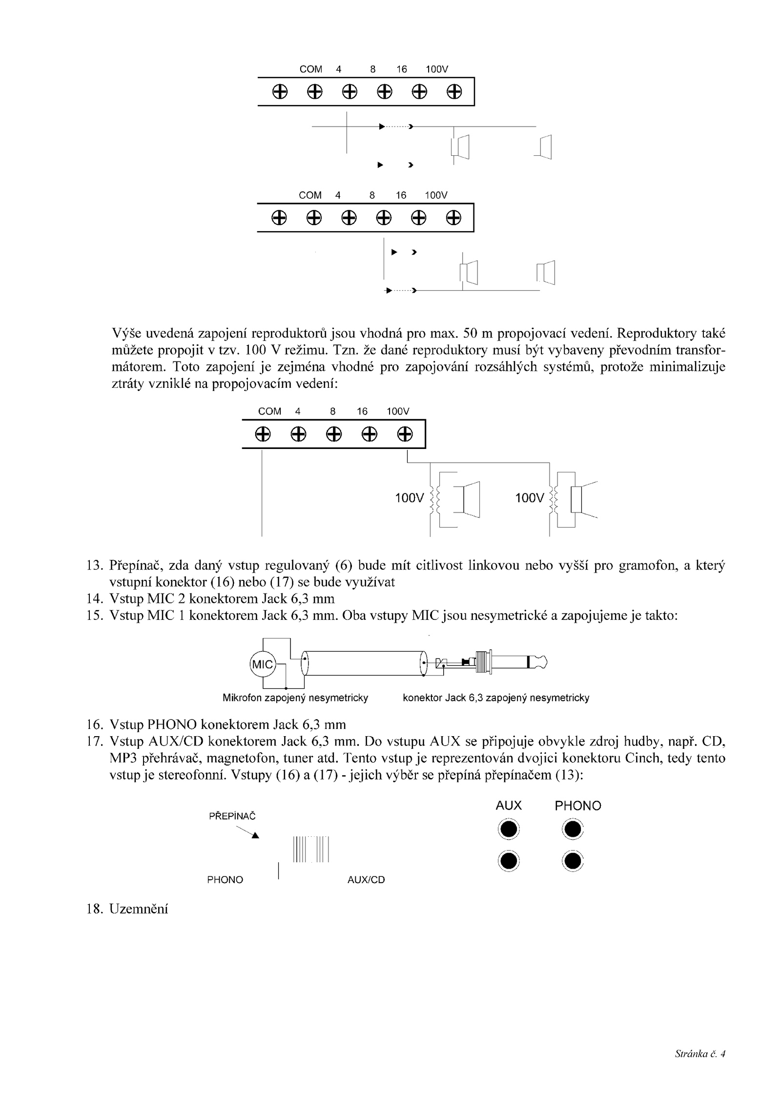 17. 100 režimu. Vstup MIC konektorem Jack 6,3 mm