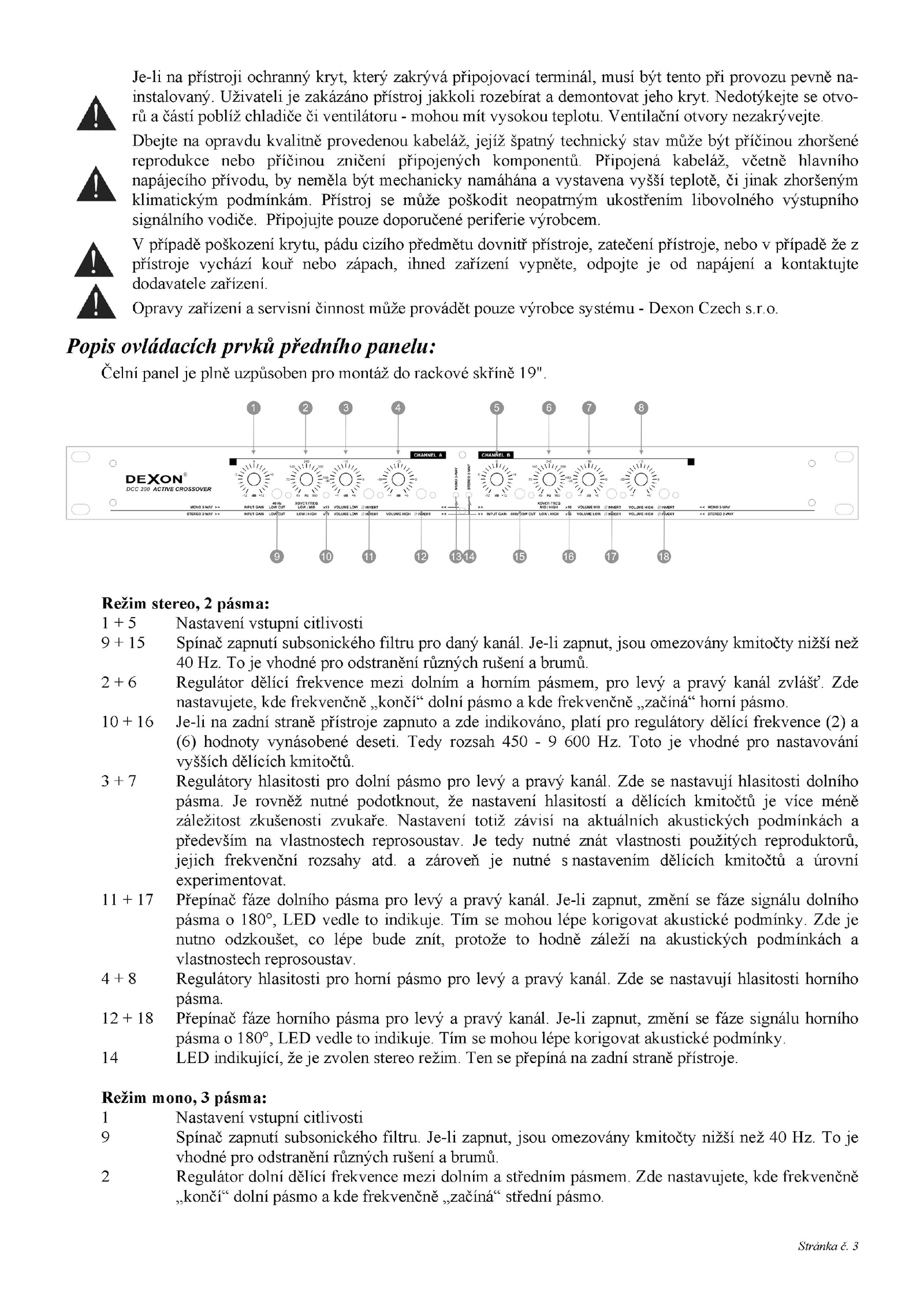2 Regulátor dělící frekvence mezi dolním horním pásmem, prolevý pravý kanál zvlášť.