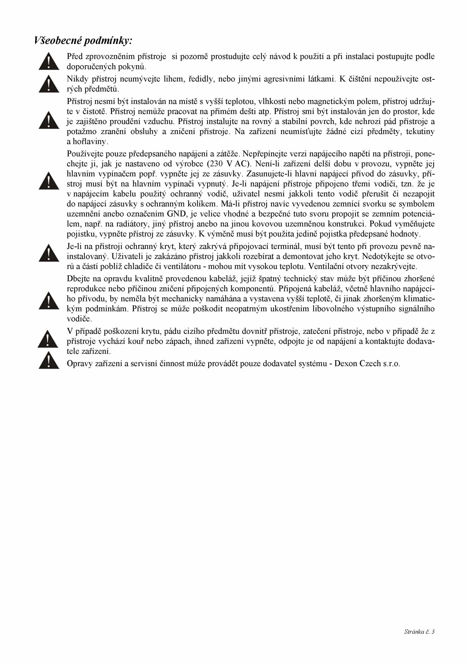 Opravy zařízení servisní činnost může provádět pouze dodavatel systému Dexon Czech s. zařízení neumísťujte žádné cizí předměty, tekutiny