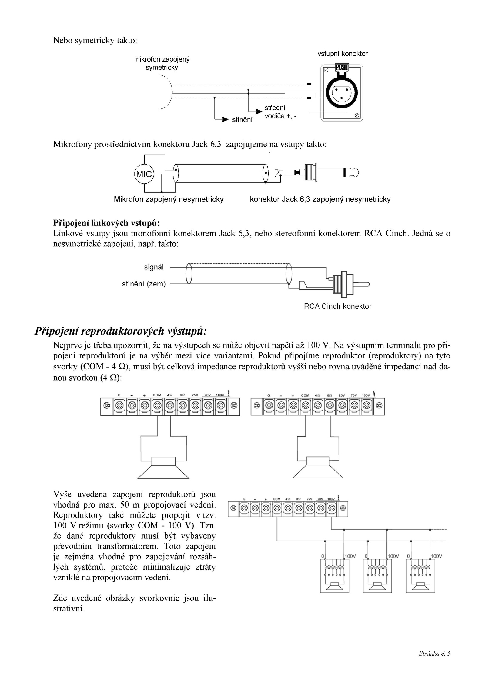 Výše uvedená zapojení reproduktorů jsou