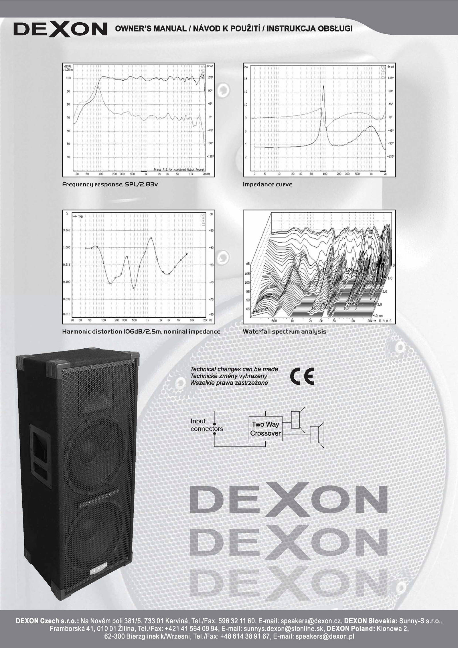 62-300 Bierzglinek k/Wrzesni, Tel.: Novém polí 381/5,733 Karviná, Tel./Fax: 596 60, E-mail: speakers@ dexon.dexon@ stonline.DEXON OWNER’S MANUAL NÁVOD POUŽITÍ INSTRUKCJA OBSLUGI