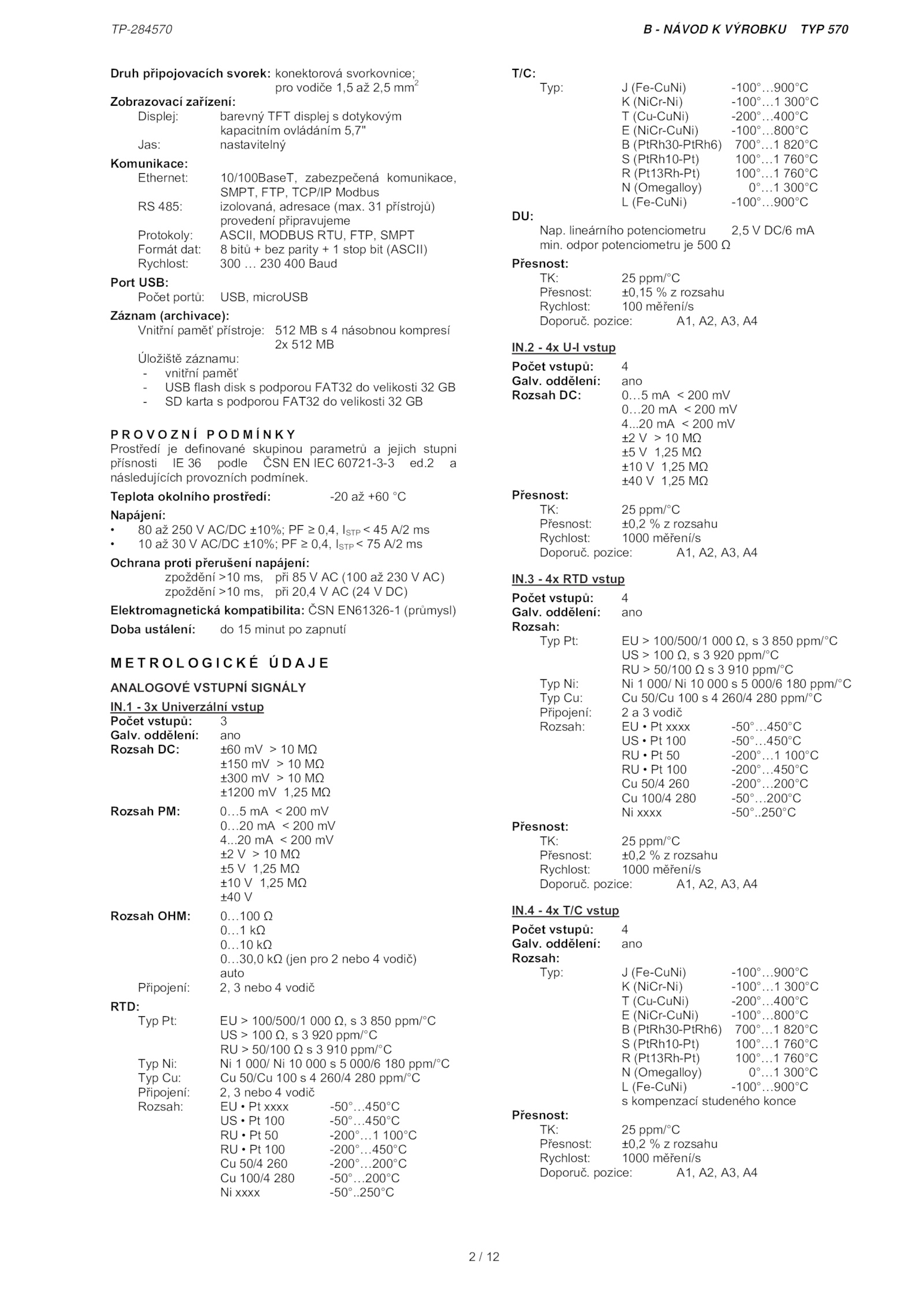 následujících provozních podmínek.TP-284570 NÁVOD VÝROBKU TYP 570