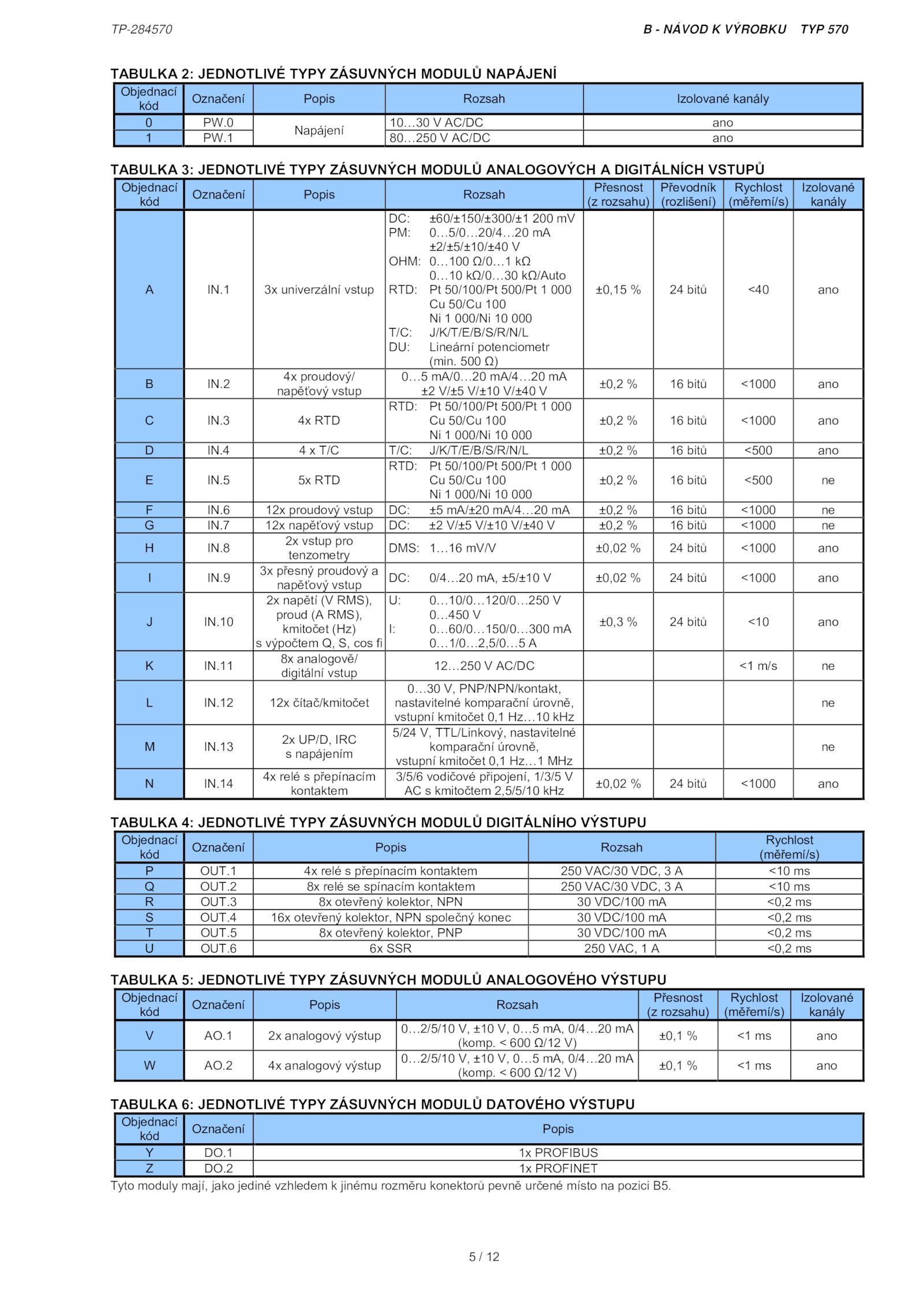 TABULKA JEDNOTLIVÉ TYPY ZÁSUVNÝCH MODULŮ DATOVÉHO VÝSTUPU