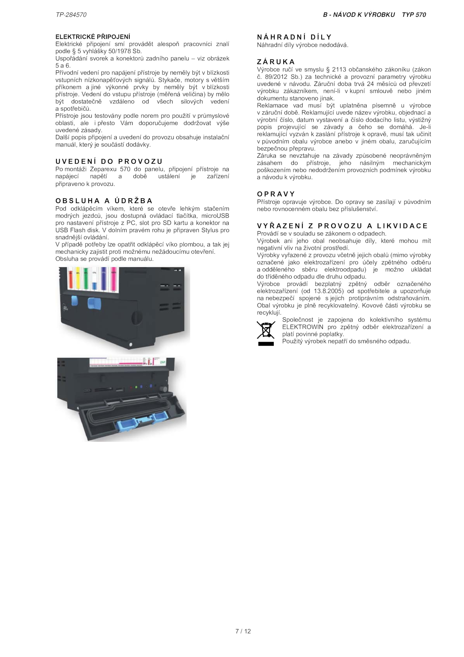 Náhradní díly výrobce nedodává.TP-284570 NÁVOD VÝROBKU TYP 570