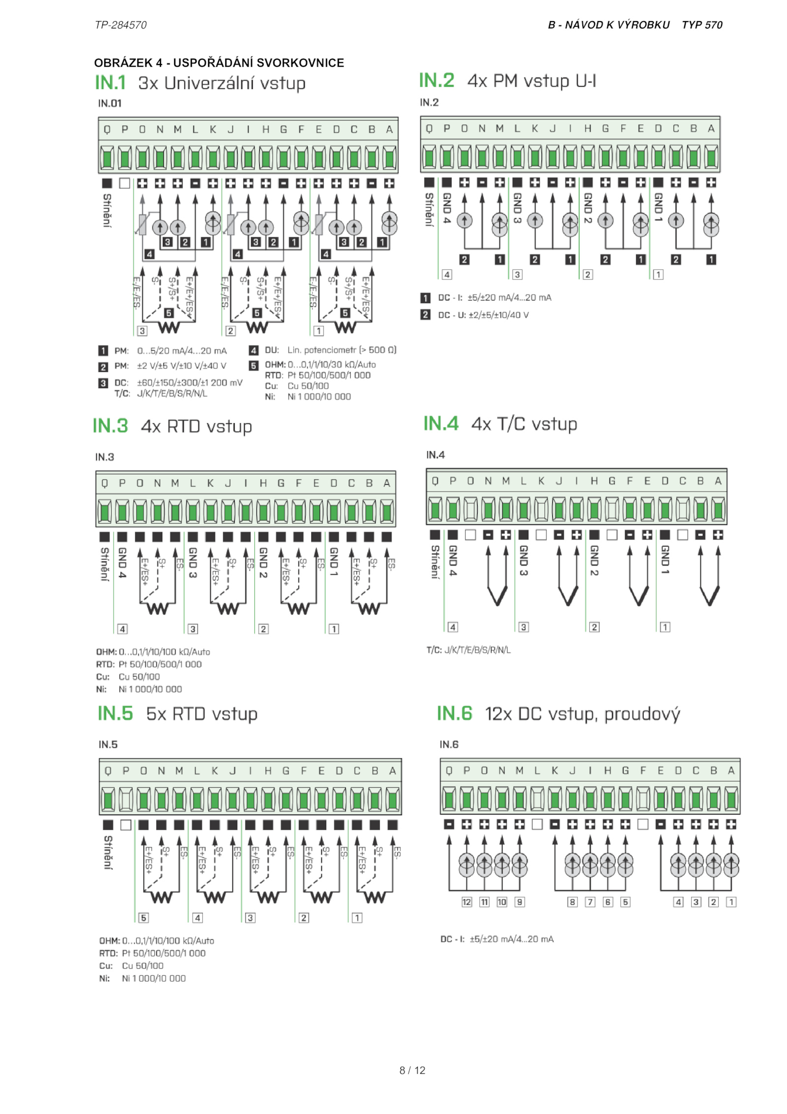 TP-284570 NÁVOD VÝROBKU TYP 570 8 12 OBRÁZEK USPOŘÁDÁNÍ SVORKOVNICE