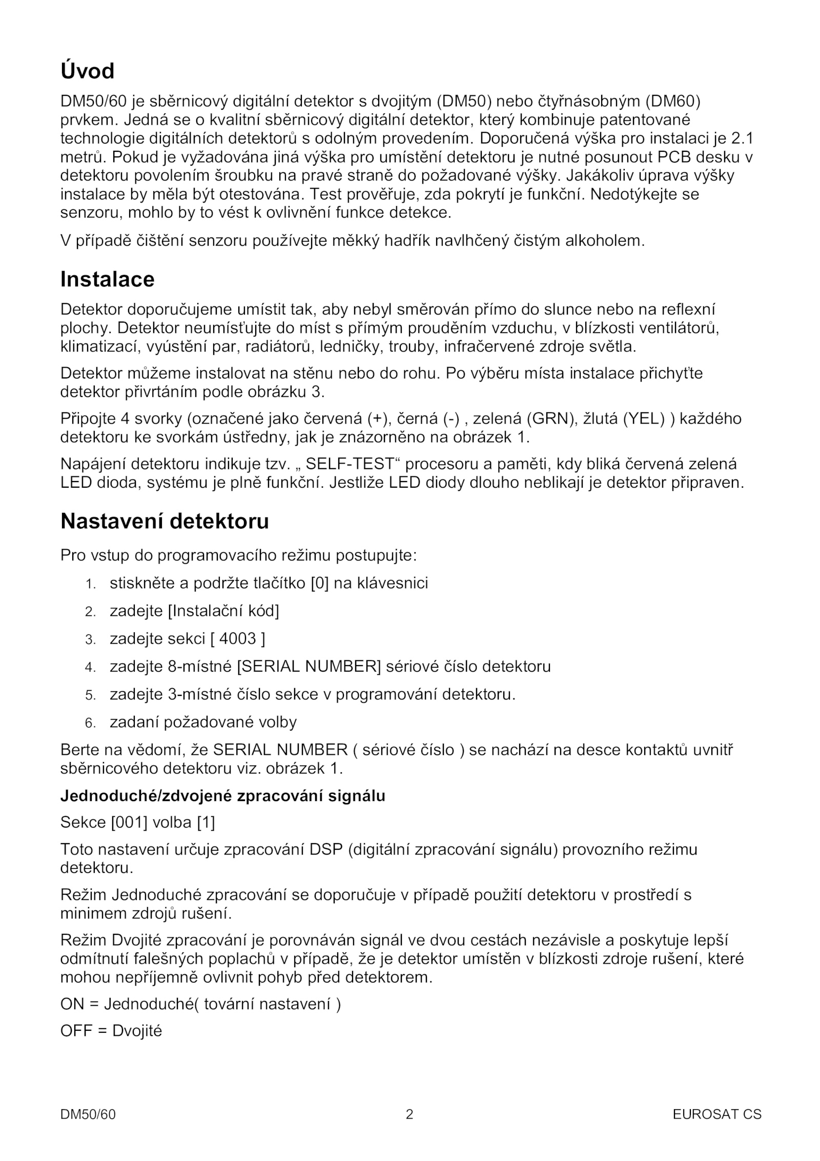 instalace měla být otestována. Jestliže LED diody dlouho neblikají detektor připraven. Doporučená výška pro instalaci 2