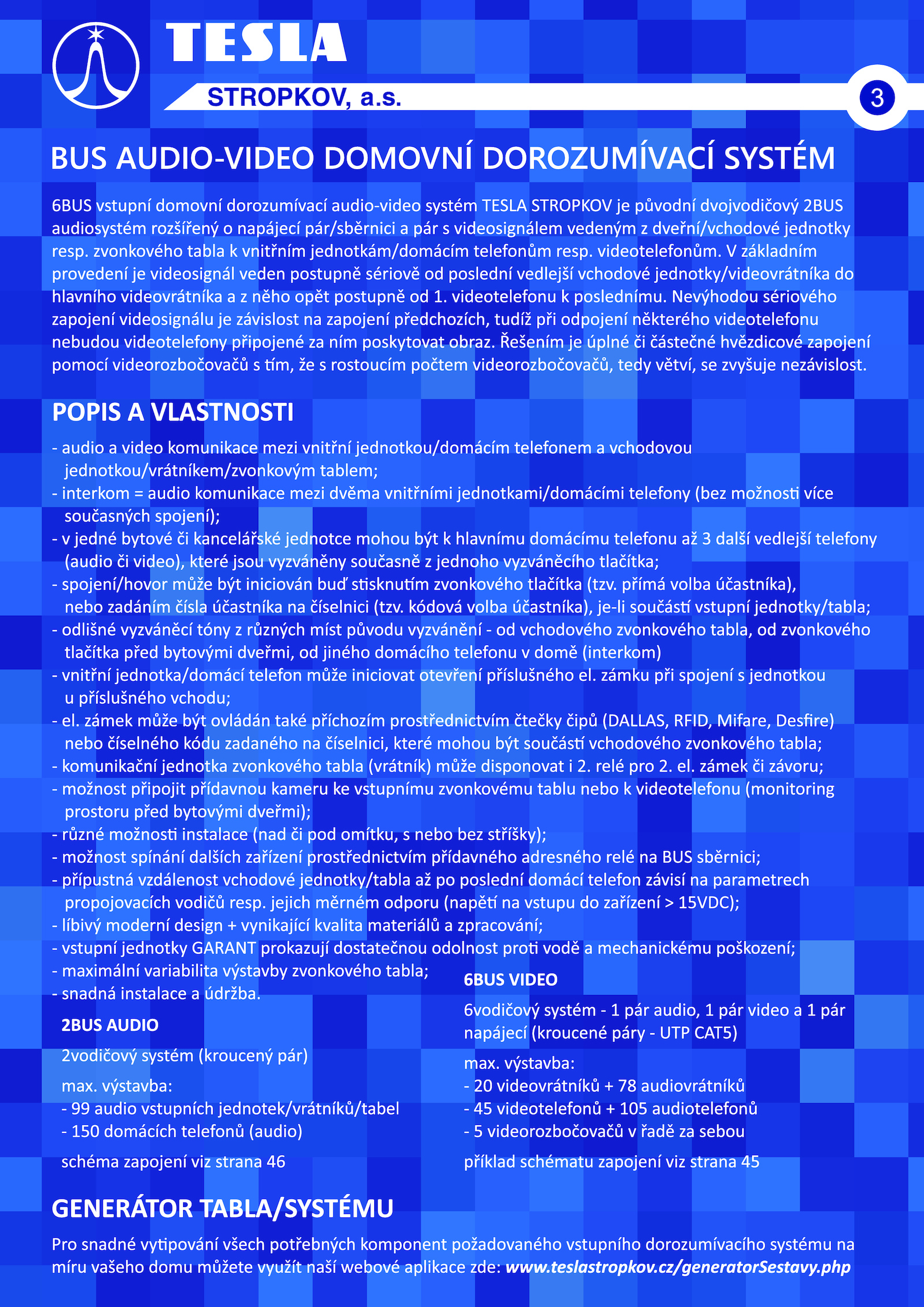 Domovní dorozumívací a přístupové systémy TESLA 2024