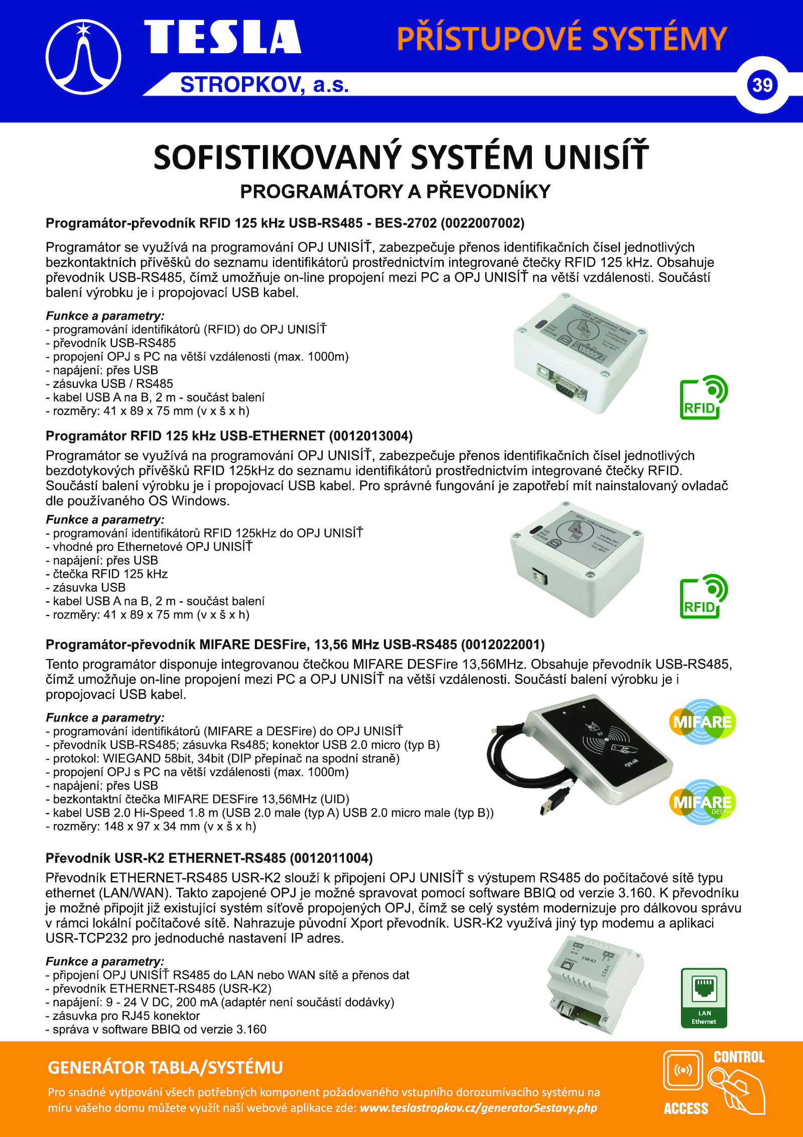 Domovní dorozumívací a přístupové systémy TESLA 2024